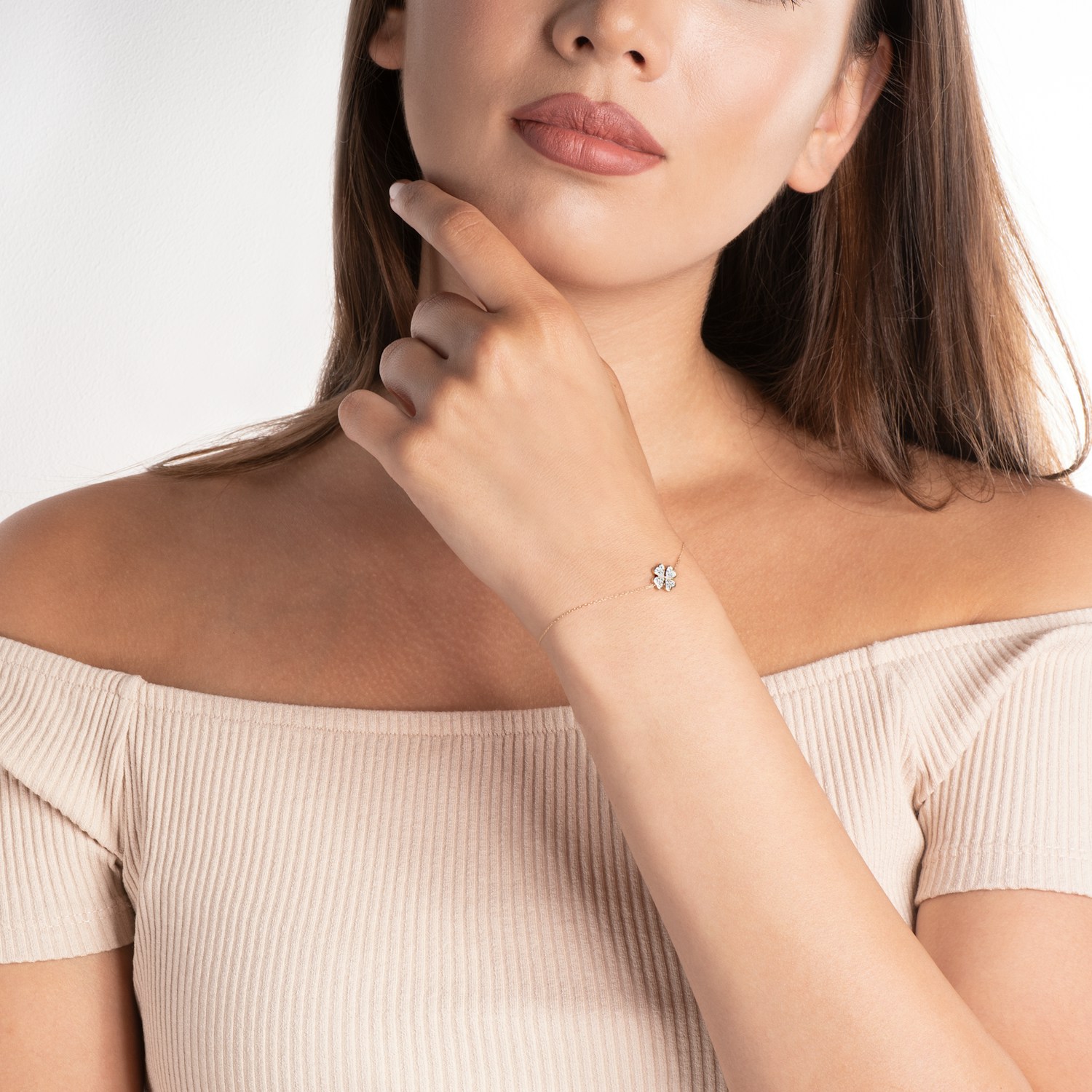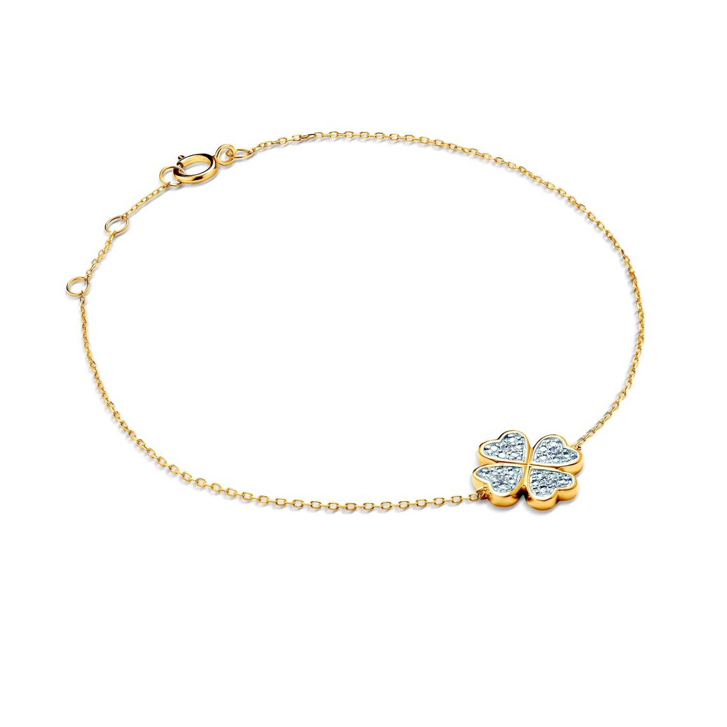 Bransoletka Savicki wykonana z żółtego złota (próba 585). W bransoletce osadzono 4 diamenty o łącznej masie 0,01 CT i szlifie brylantowym.