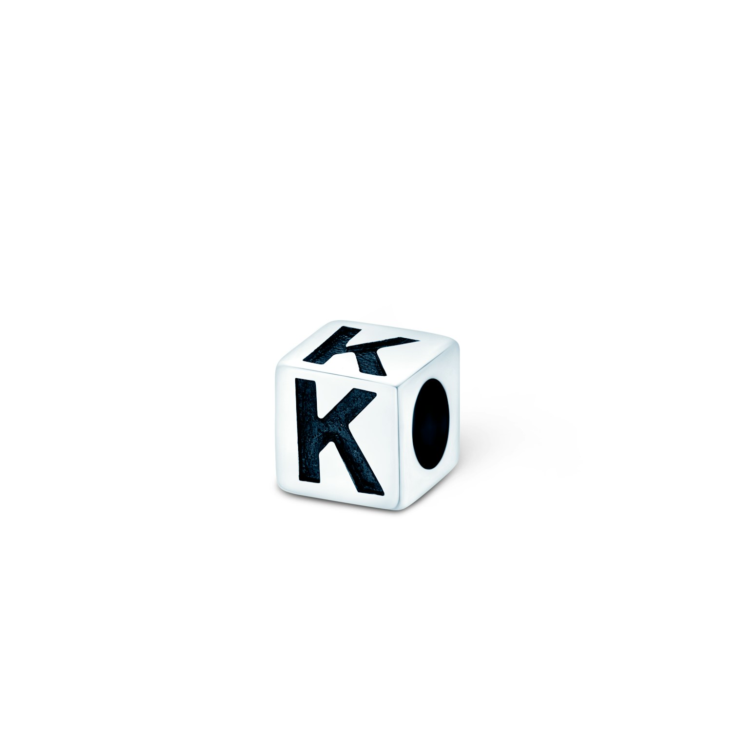 Zawieszka charms litera K Savicki wykonana ze srebra próby 925.
