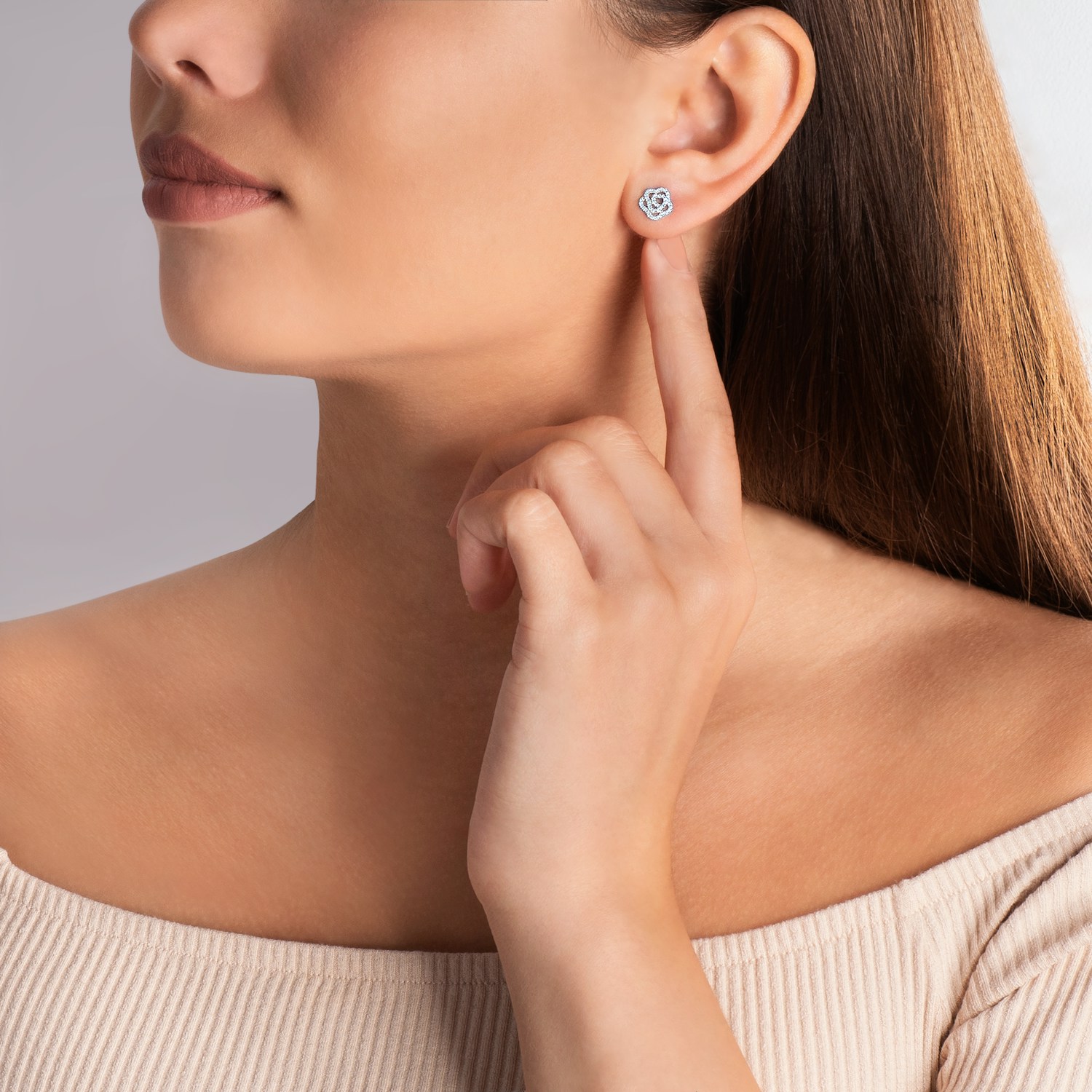 Kolczyki Savicki wykonane z białego złota (próba 375). W kolczykach zostało osadzonych 80 diamentów o łącznej masie 0,21 ct. Kolczyki posiadają blokadę, która zabezpiecza zapięcie przed zsunięciem się.