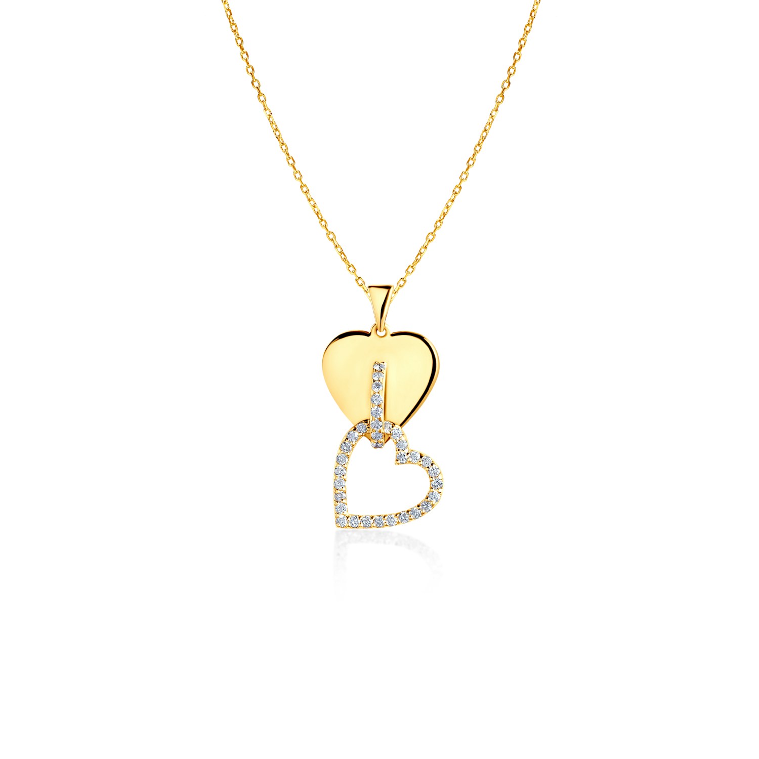 Naszyjnik serca Savicki wykonany z żółtego złota (próba 585). W naszyjniku zostały osadzone 34 diamenty o łącznej masie 0,22 ct.