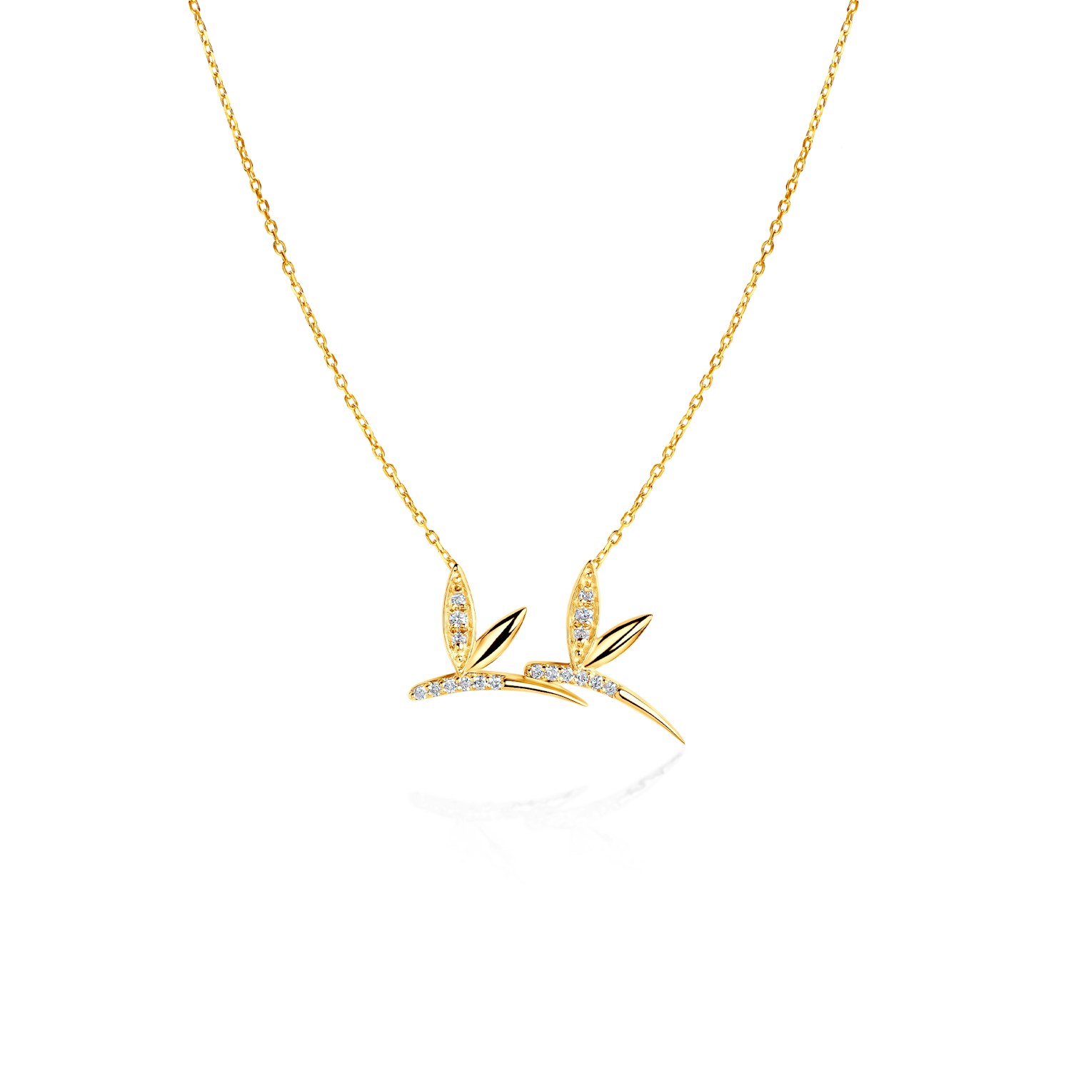 Naszyjnik ważki Savicki wykonany z żółtego złota (próba 585). W naszyjniku zostało osadzonych 18 diamentów o łącznej masie 0,14 ct.