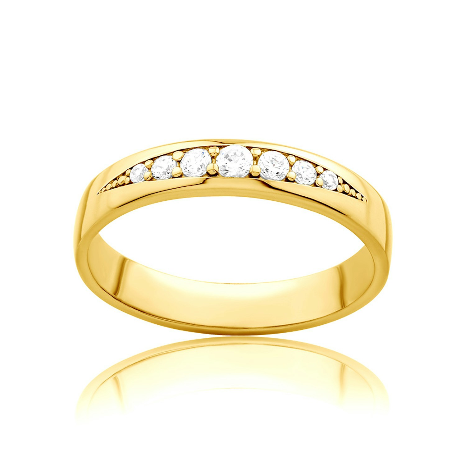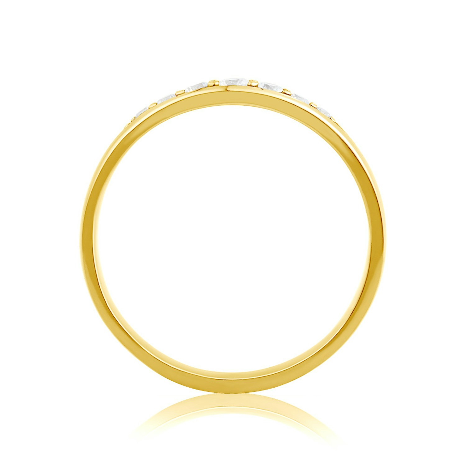 Pierścionek z diamentami o szlifie brylantowym wysokiej czystości SI/H, o łącznej masie 0,16 ct. Wykonany z 14-karatowego żółtego złota (próba 0,585).