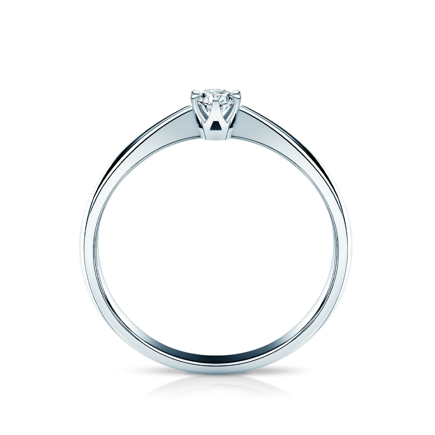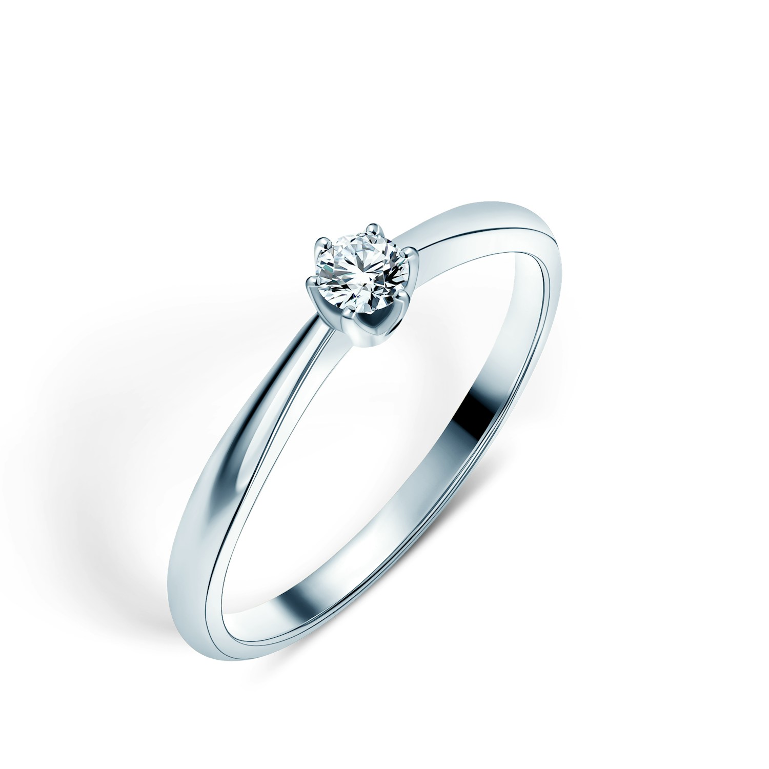 Pierścionek zaręczynowy z centralnie umieszczonym diamentem 0,08 ct o wysokiej jakości szlifie brylantowym i czystości SI2/H. Wszystkie diamenty SAVICKI objęte są wieczystą gwarancją oraz posiadają oryginalny certyfikat jakości. Pierścionek z diamentem został wykonany z 14-karatowego białego złota (próba 585).