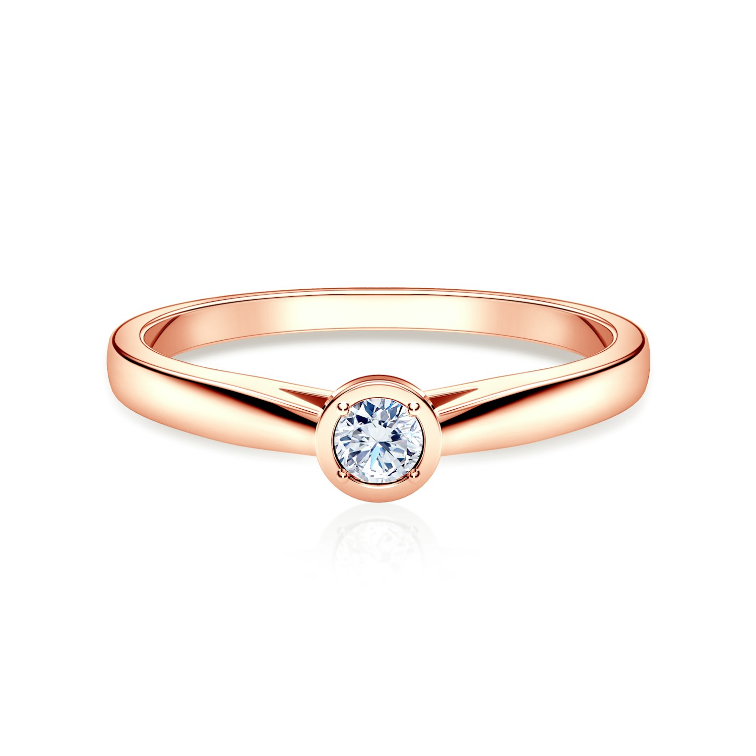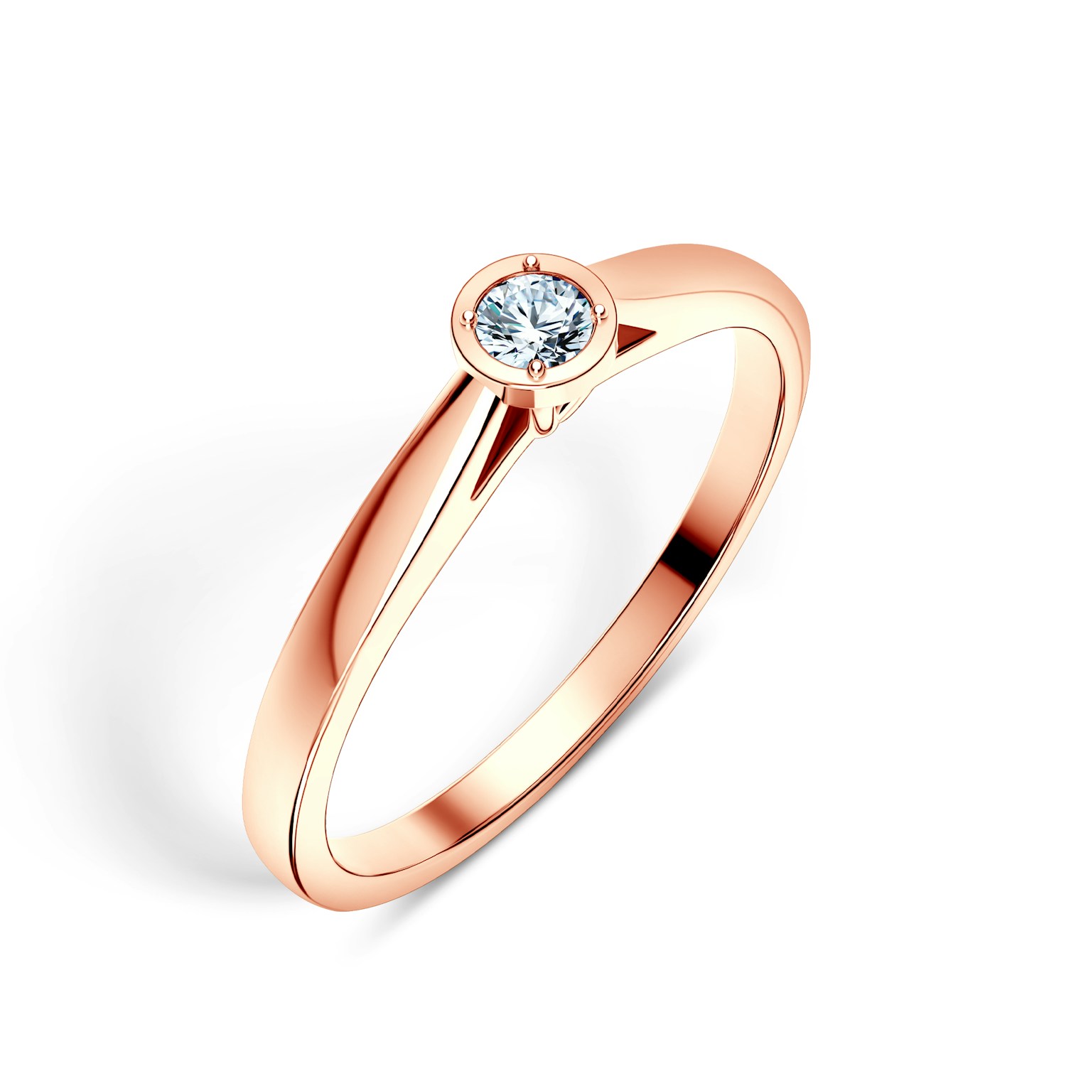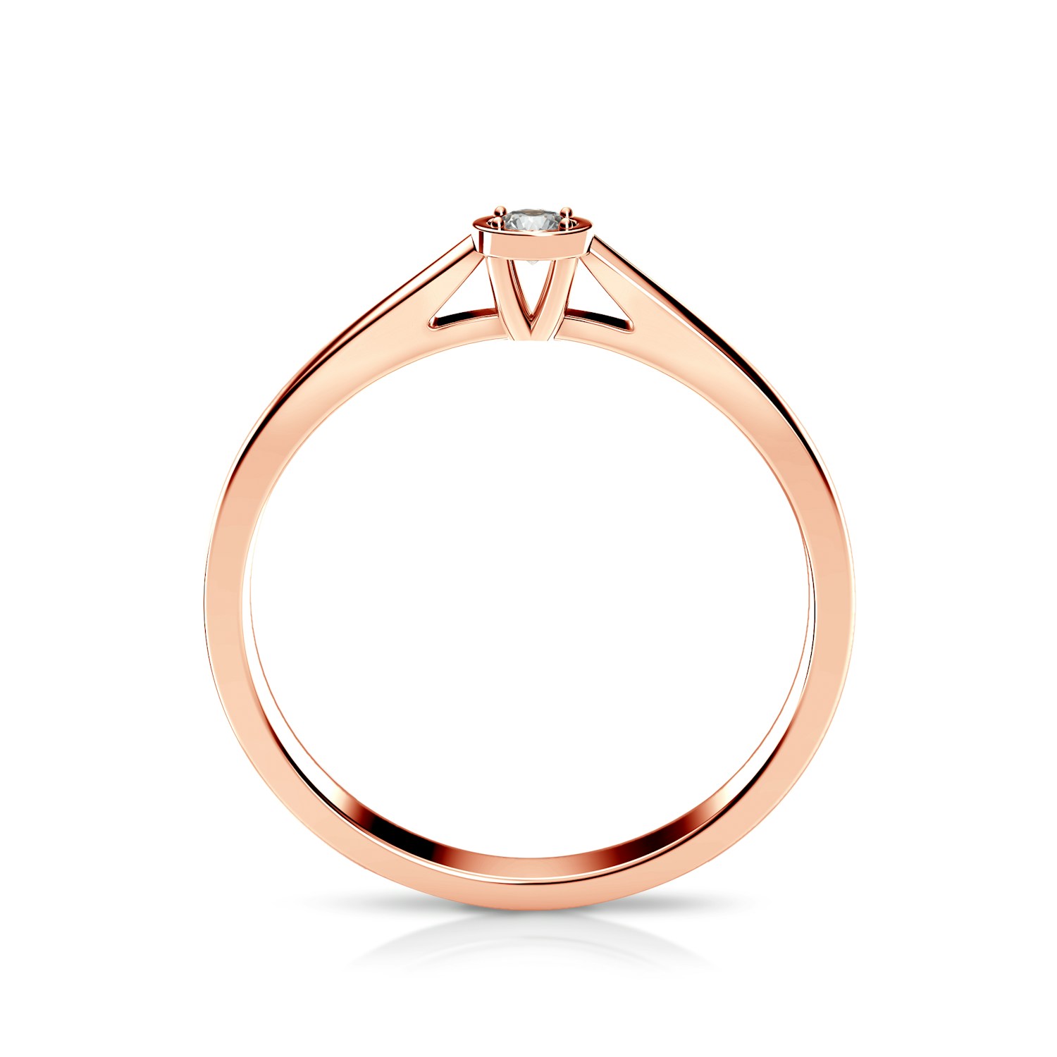 Pierścionek zaręczynowy z centralnie umieszczonym diamentem 0,08 ct o wysokiej jakości szlifie brylantowym i czystości SI2/H. Wszystkie diamenty SAVICKI objęte są wieczystą gwarancją oraz posiadają oryginalny certyfikat jakości. Pierścionek z diamentem został wykonany z 14-karatowego różowego złota (próba 585).
