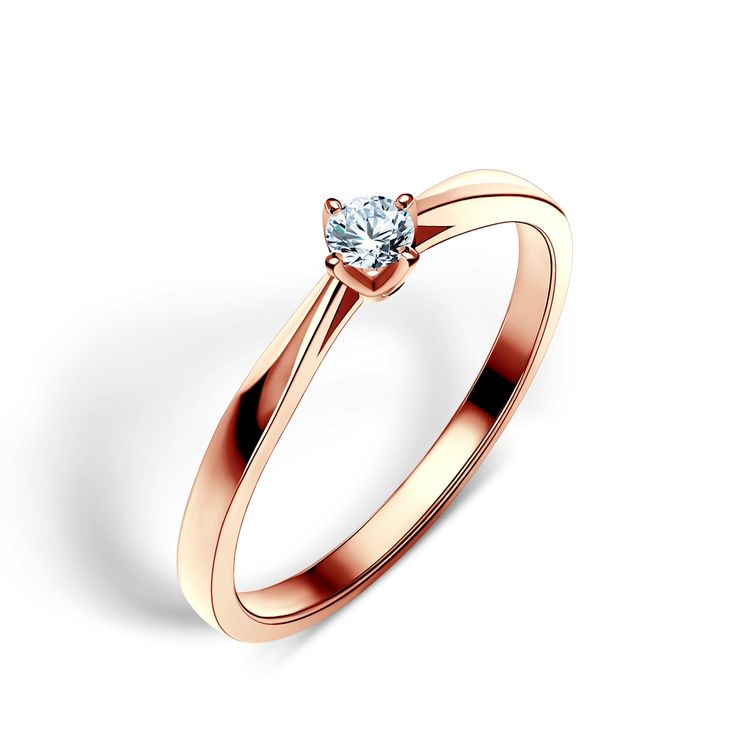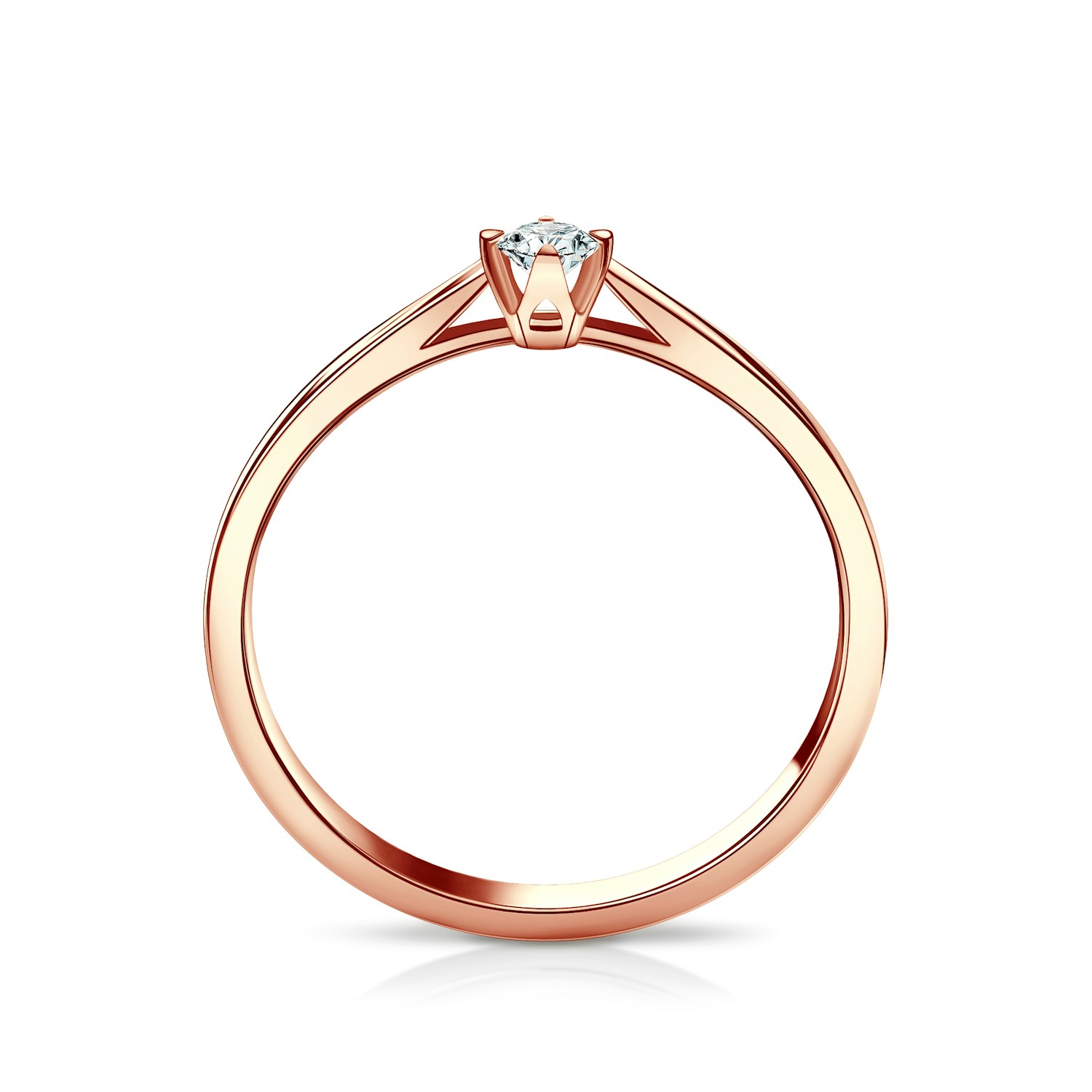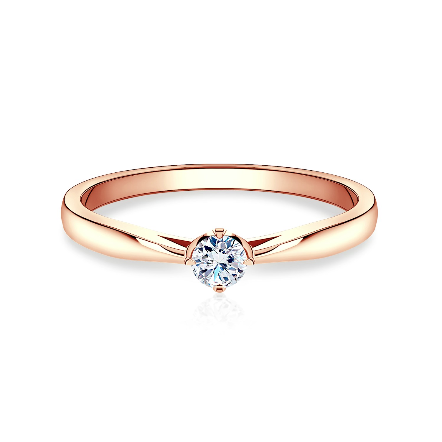 Pierścionek zaręczynowy z centralnie umieszczonym diamentem 0,08 ct o wysokiej jakości szlifie brylantowym i czystości SI2/H. Wszystkie diamenty SAVICKI objęte są wieczystą gwarancją oraz posiadają oryginalny certyfikat jakości. Pierścionek z diamentem został wykonany z 14-karatowego różowego złota (próba 585).