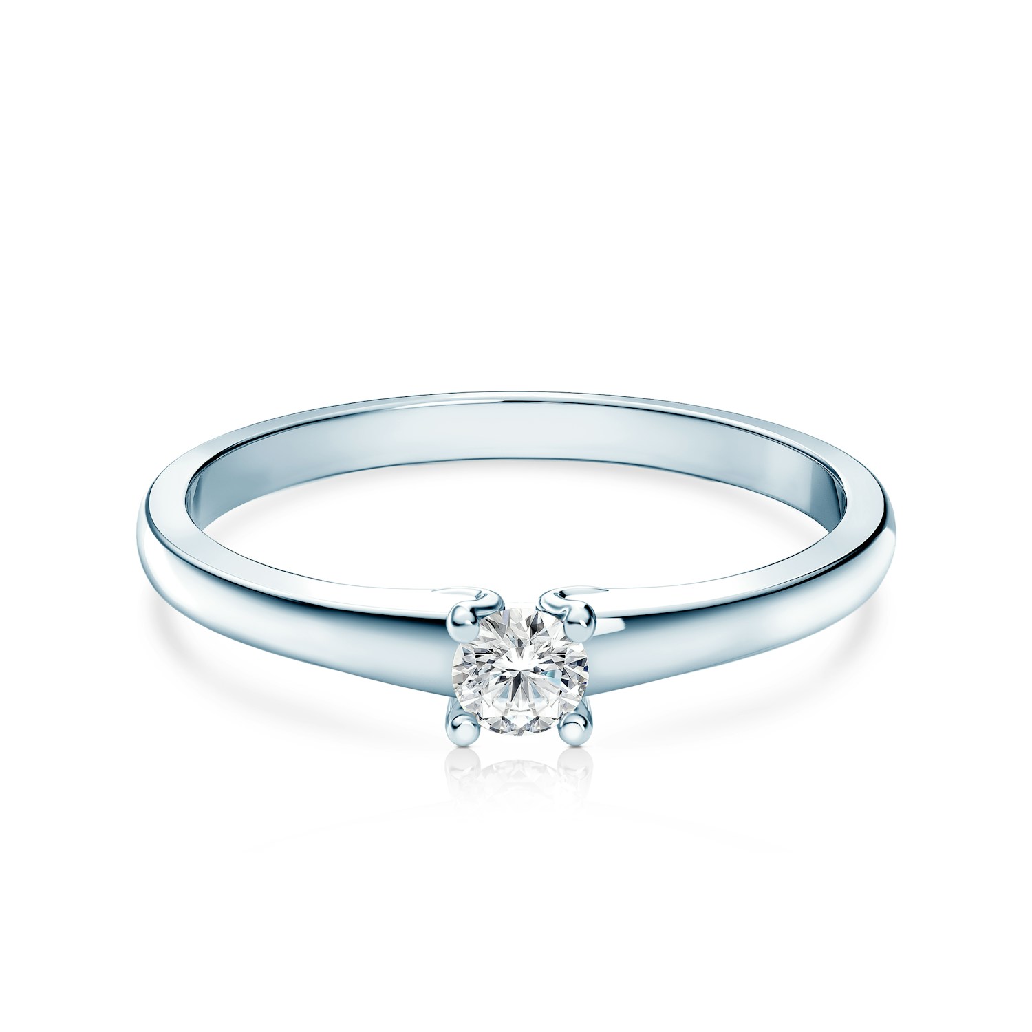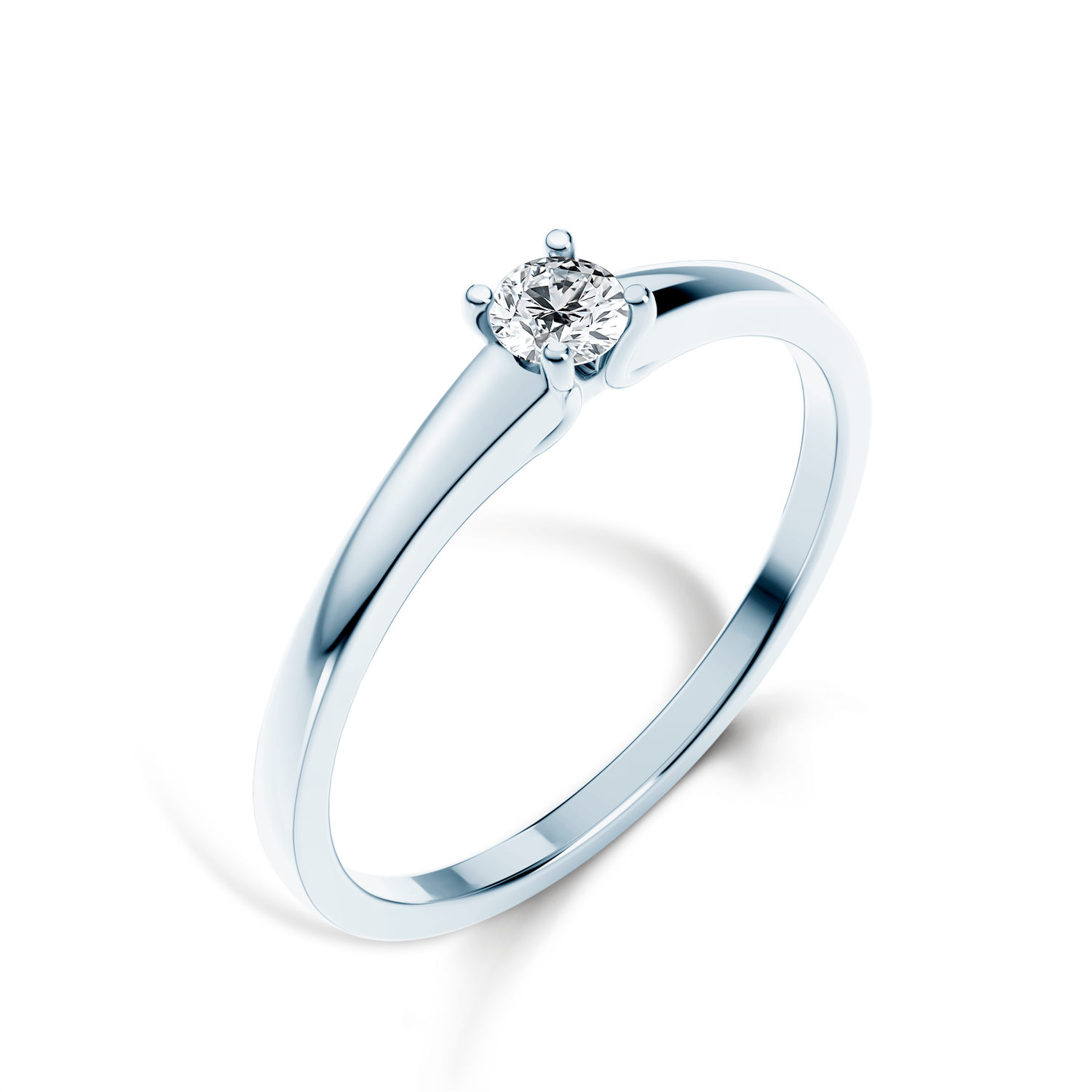 Pierścionek zaręczynowy z centralnie umieszczonym diamentem 0,08 ct o wysokiej jakości szlifie brylantowym i czystości SI2/H. Wszystkie diamenty SAVICKI objęte są wieczystą gwarancją oraz posiadają oryginalny certyfikat jakości. Pierścionek z diamentem został wykonany z 14-karatowego białego złota (próba 585).