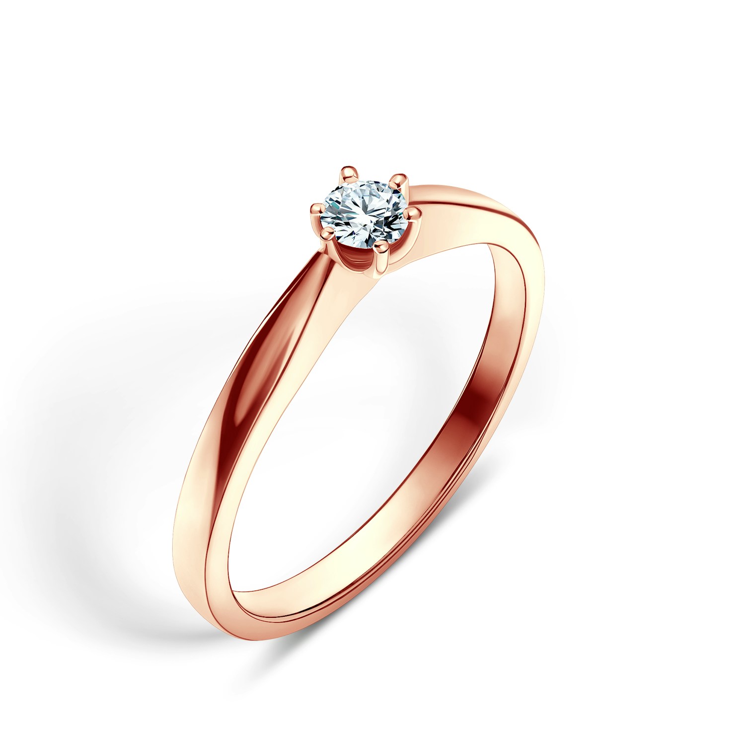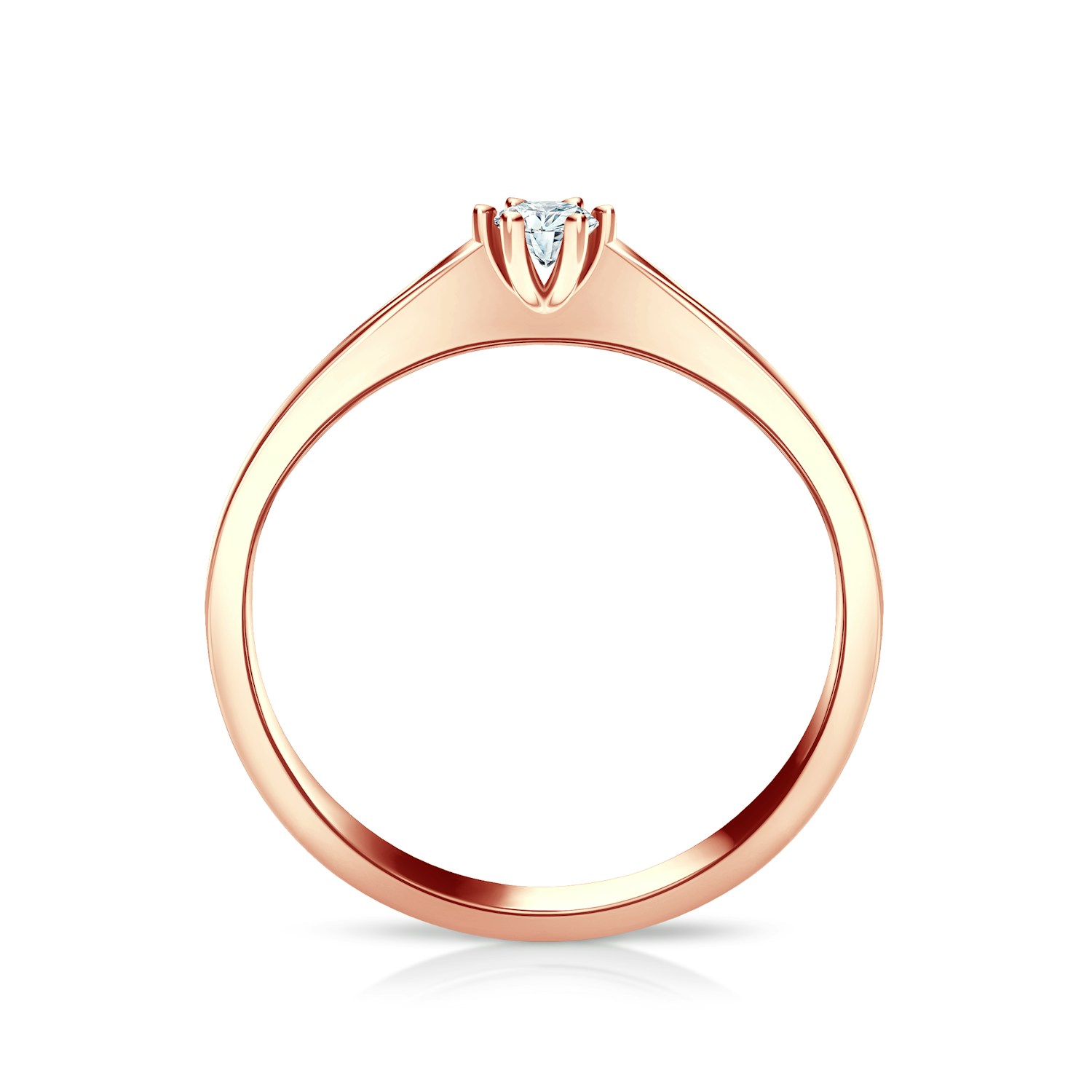 Pierścionek zaręczynowy z centralnie umieszczonym diamentem 0,05 ct o wysokiej jakości szlifie brylantowym i czystości SI2/H. Wszystkie diamenty SAVICKI objęte są wieczystą gwarancją oraz posiadają oryginalny certyfikat jakości. Pierścionek z diamentem został wykonany z 14-karatowego różowego złota (próba 585).