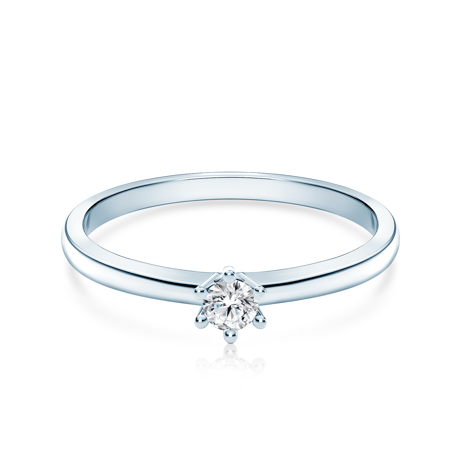 Pierścionek zaręczynowy z centralnie umieszczonym diamentem 0,05 ct o wysokiej jakości szlifie brylantowym i czystości SI2/H. Wszystkie diamenty SAVICKI objęte są wieczystą gwarancją oraz posiadają oryginalny certyfikat jakości. Pierścionek z diamentem został wykonany z 14-karatowego białego złota (próba 585).