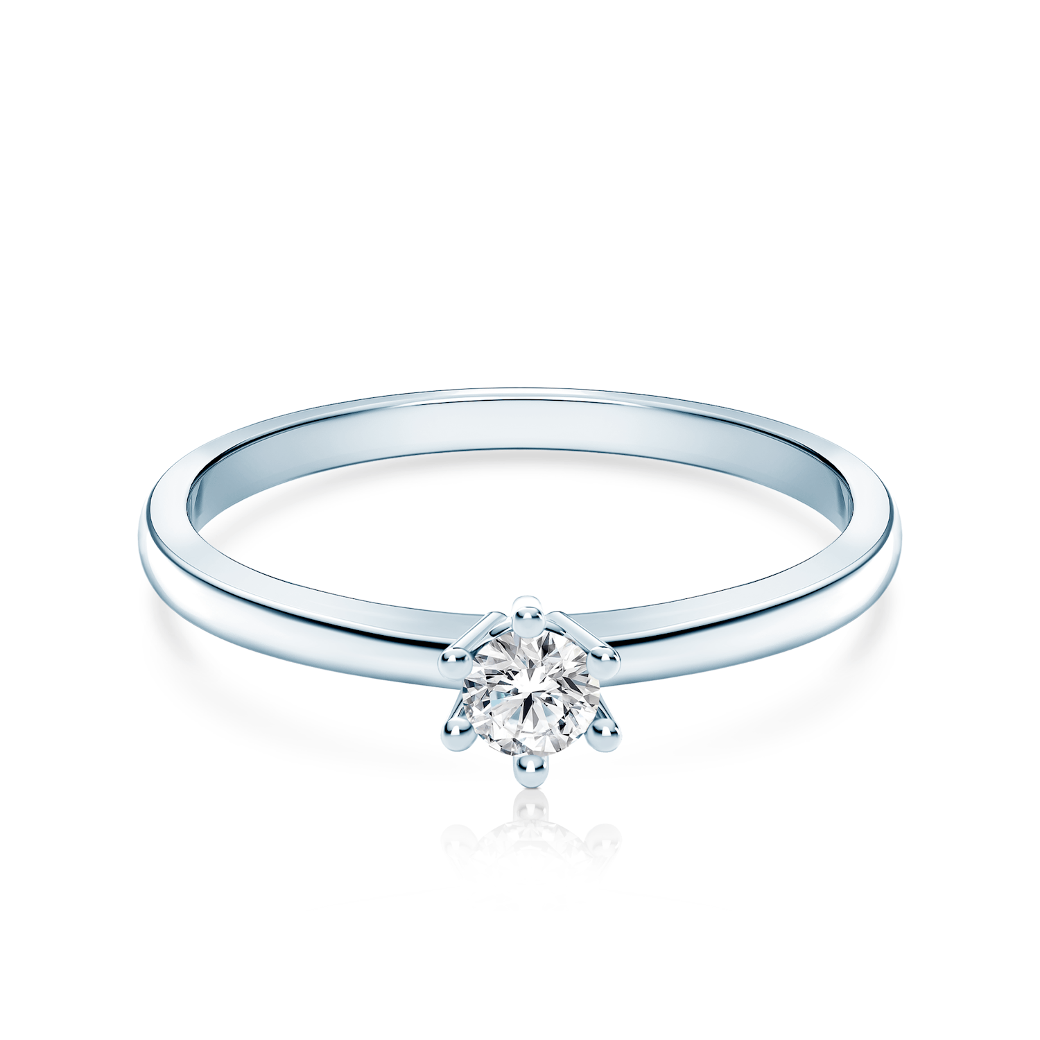 Pierścionek zaręczynowy z centralnie umieszczonym diamentem 0,08 ct o wysokiej jakości szlifie brylantowym i czystości SI2/H. Wszystkie diamenty SAVICKI objęte są wieczystą gwarancją oraz posiadają oryginalny certyfikat jakości. Pierścionek z diamentem został wykonany z 14-karatowego białego złota (próba 585).