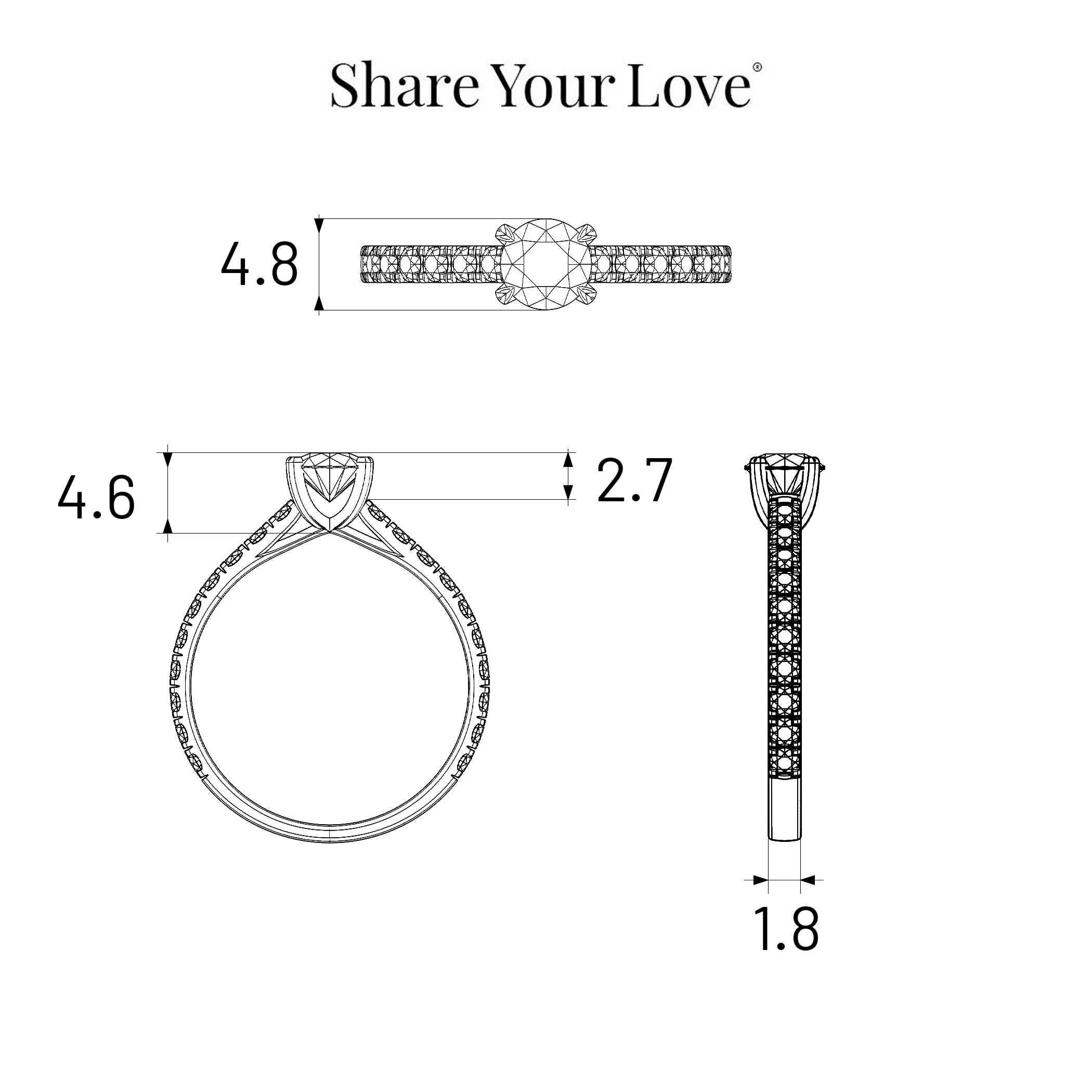 Pierścionek zaręczynowy z centralnie umieszczonym czarnym diamentem o masie 0,40 ct, wysokiej czystości i kolorze SI/H oraz perfekcyjnym szlifie brylantowym. Boczne czarne diamenty posiadają łączną masę 0,20 ct, nieskazitelną czystość i kolor SI/H z doskonałym szlifem brylantowym. Wykonany z 14-karatowego czarnego złota (próba 585).