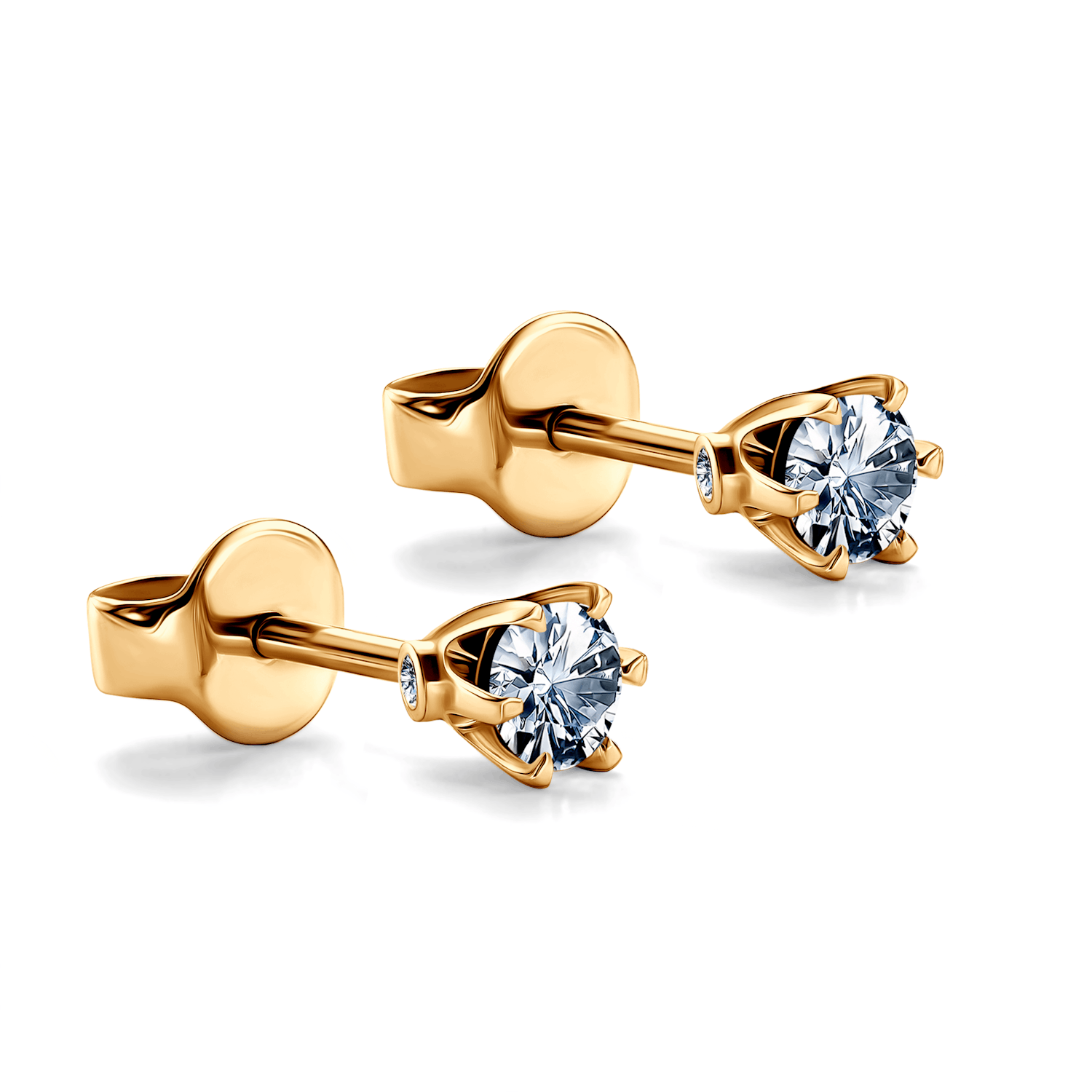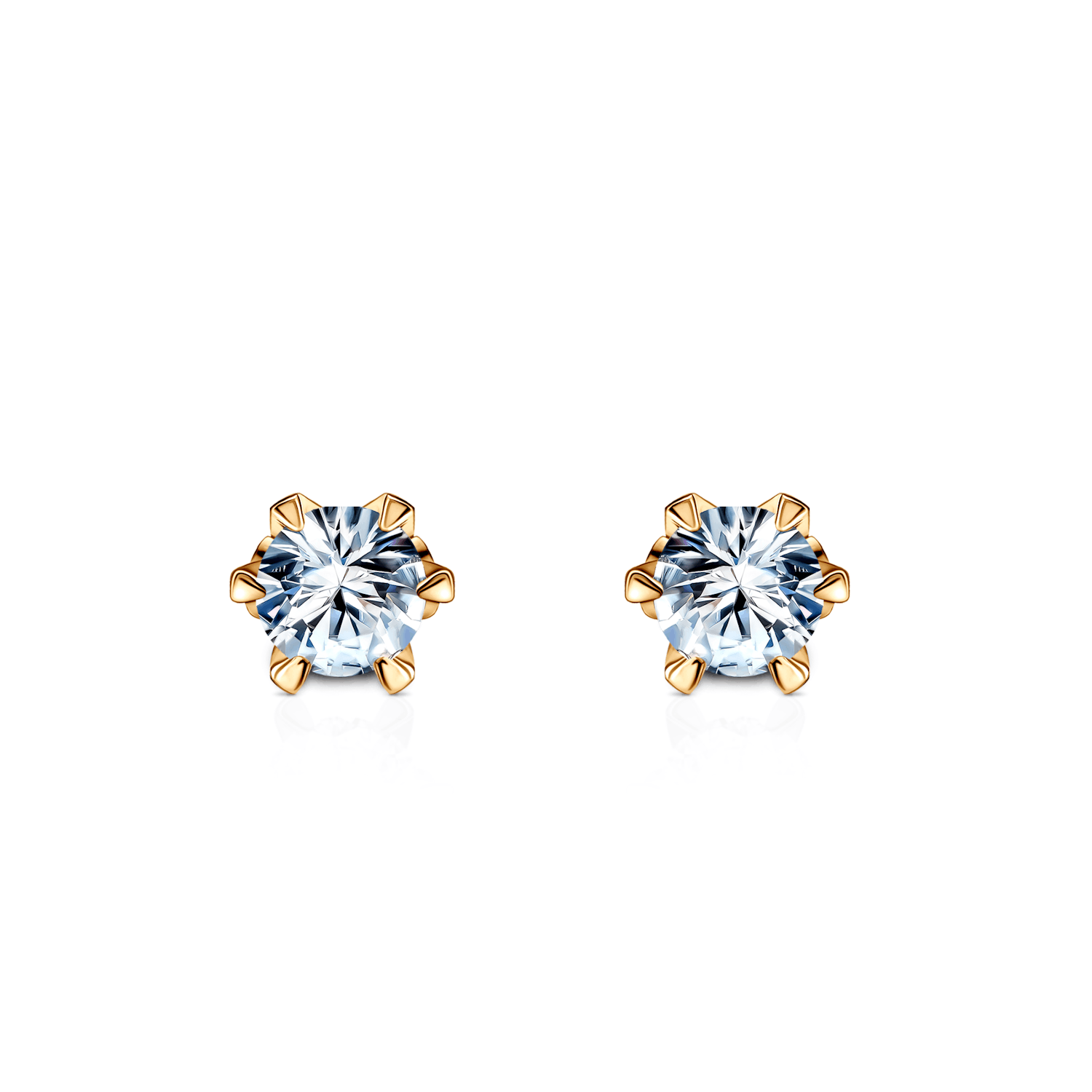 Kolczyki wykonane z 14-karatowego żółtego złota (próba 585). W kolczykach zostały osadzone 2 białe szafiry o szlifie brylantowym o łącznej masie 0,2 ct oraz 4 diamenty o wysokiej czystości SI2/H o łącznej masie 0,02 ct.