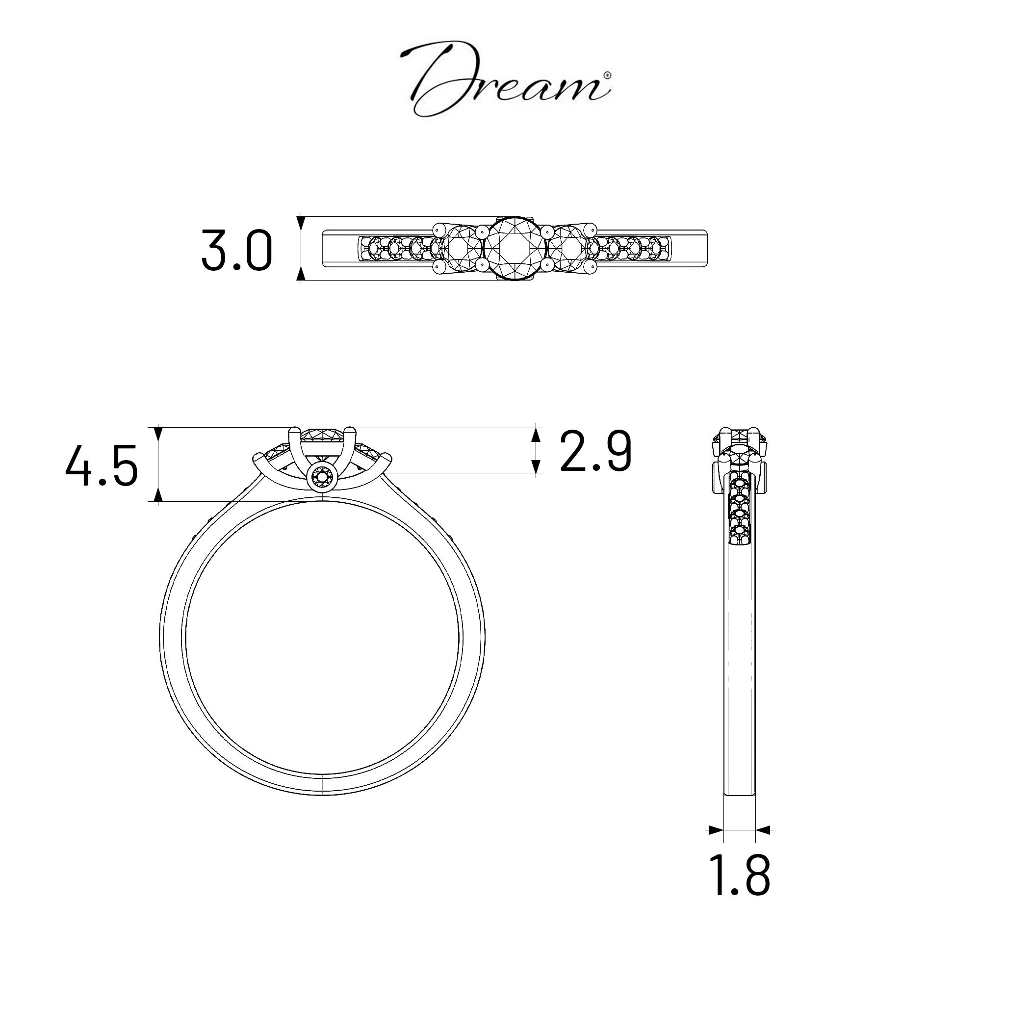 Specjalnie wyprofilowana obrączka idealnie wpasowuje się w pierścionek zaręczynowy, tworząc jedyną taką kompozycję biżuterii.
