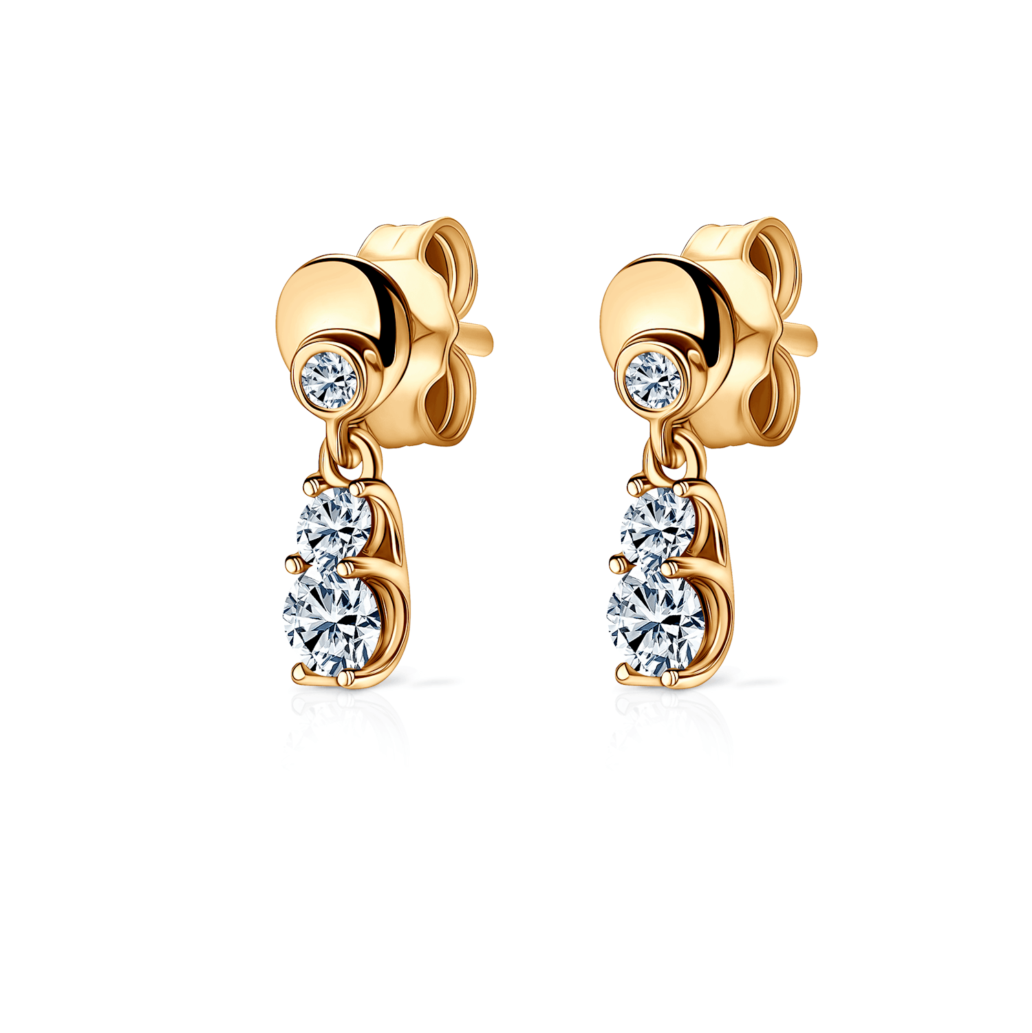Te olśniewające kolczyki z diamentami o szlifie brylantowym i masie 0,20 ct oraz otaczającymi je 4 diamentami o łącznej masie 0,12 ct, wykonane zostały z 14-karatowego żółtego złota próby 0,585.