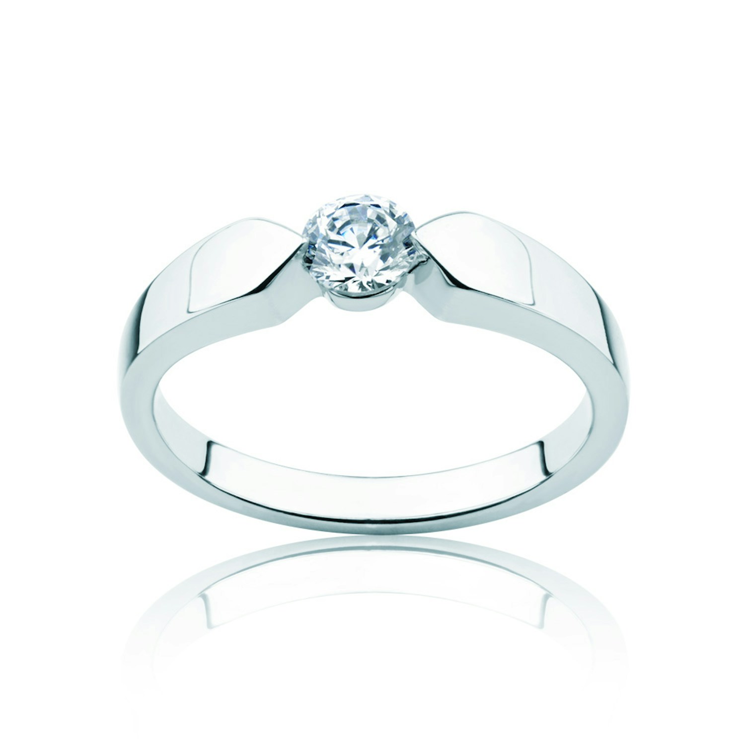 Pierścionek zaręczynowy z diamentem 0,30 ct o szlifie brylantowym wysokiej czystości SI/H, wykonany z 14-karatowego białego złota (próba 0,585).