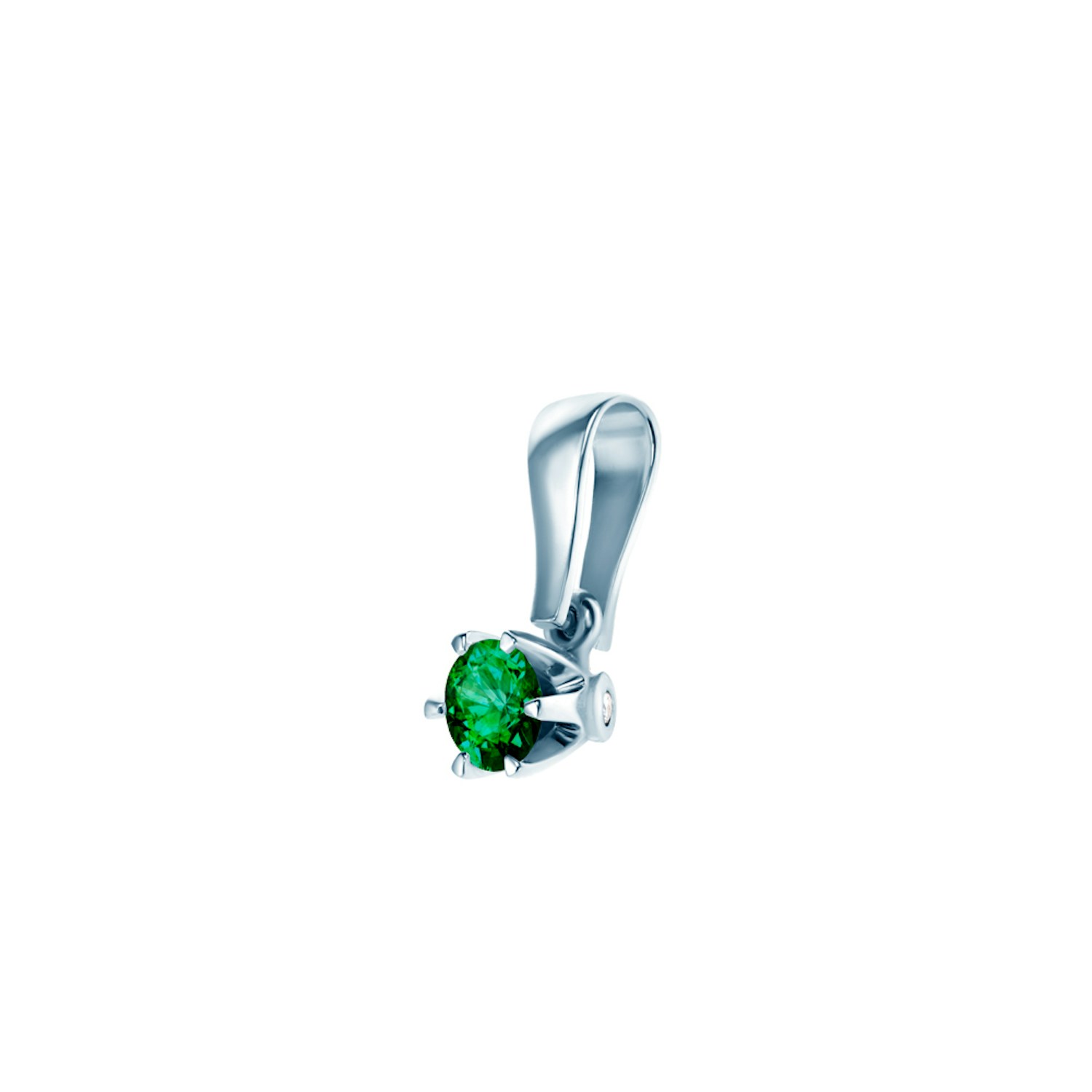 Zawieszka wykonana z 14-karatowego białego złota (próba 585). W zawieszce został osadzony szmaragd o masie 0,50 ct i szlifie brylantowym oraz dwa diamenty o łącznej masie 0,03 ct, wysokiej czystości SI2/H.