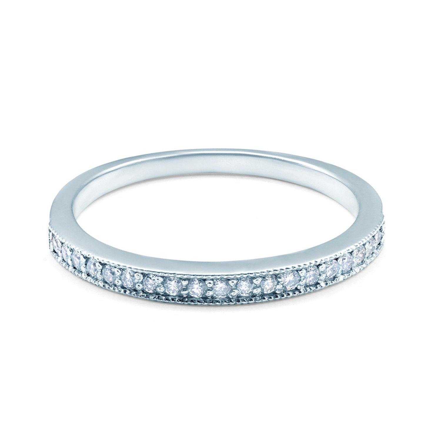 Pierścionek z diamentami o łącznej masie 0,08 ct, perfekcyjnym szlifie brylantowym, wysokiej czystości i kolorze SI2/H (wszystkie diamenty w naszym sklepie objęte są wieczystą gwarancją oraz posiadają oryginalny certyfikat jakości, wystawiany przez naszą firmę). Wykonany z 14-karatowego białego złota (próba 585).