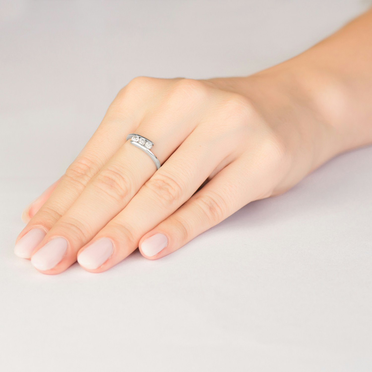Pierścionek zaręczynowy z diamentami o łącznej masie 0,27 ct, perfekcyjnym szlifie brylantowym, wysokiej czystości i kolorze SI2/H (wszystkie diamenty w naszym sklepie objęte są wieczystą gwarancją oraz posiadają oryginalny certyfikat jakości, wystawiany przez naszą firmę). Wykonany z 14-karatowego białego złota (próba 585).