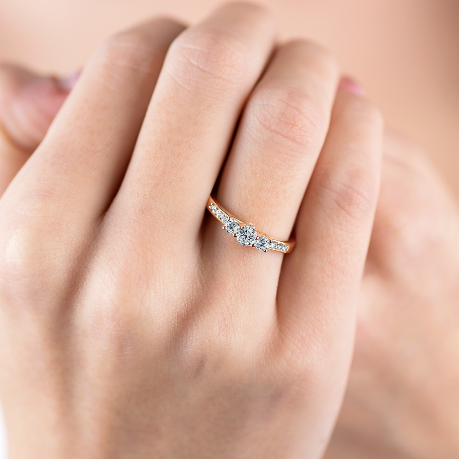 Specjalnie wyprofilowana obrączka idealnie wpasowuje się w pierścionek zaręczynowy, tworząc jedyną taką kompozycję biżuterii.