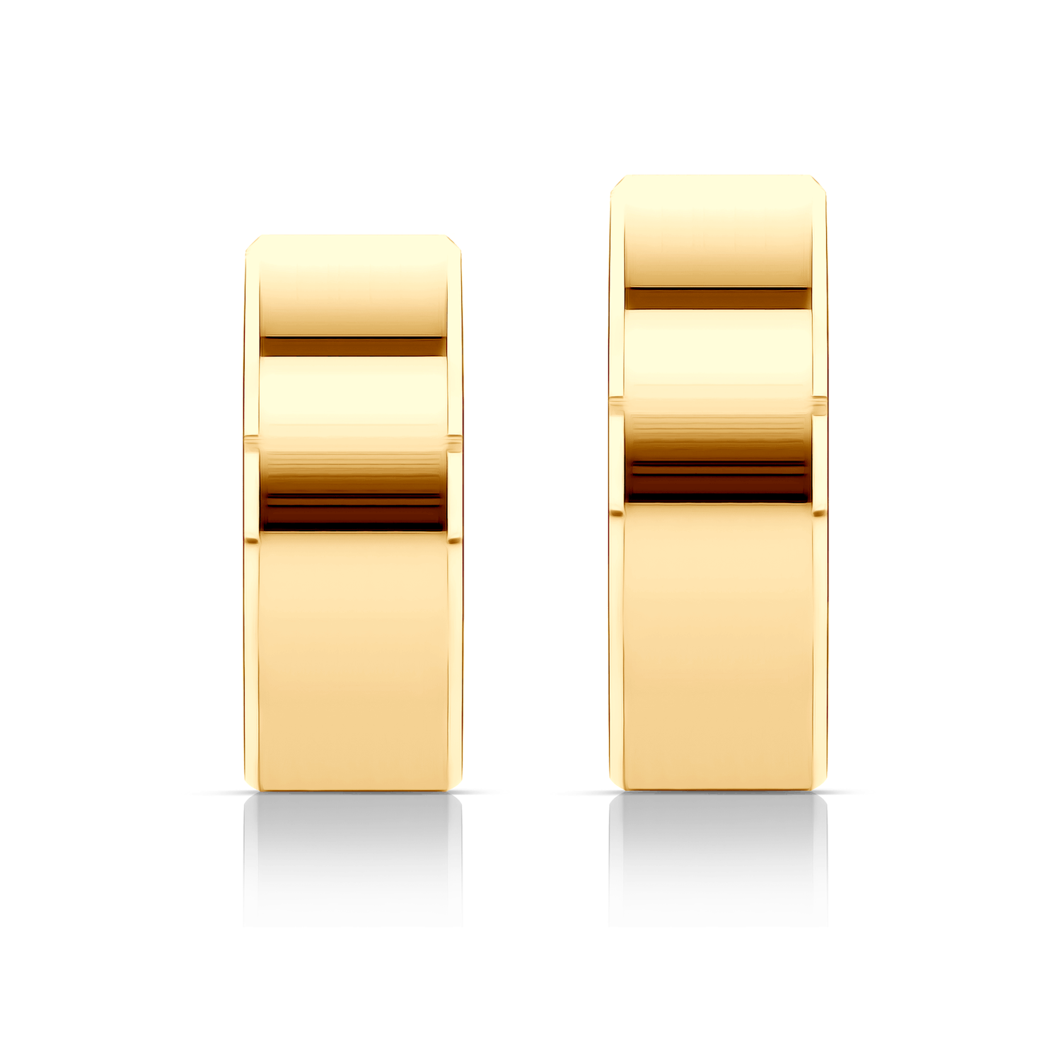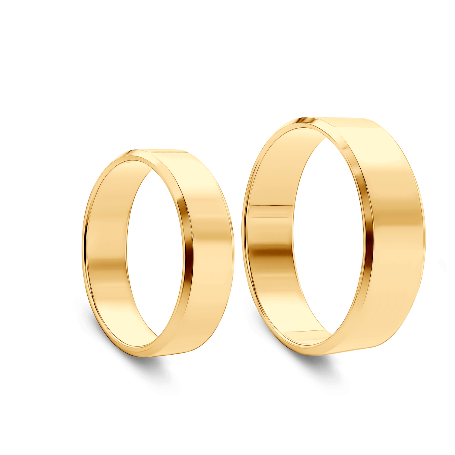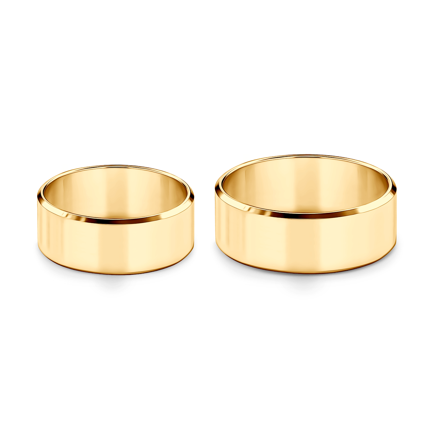 Obrączki ślubne z fazą o klasycznym wzorze, wykonane z żółtego złota (próba 0,333/0,585/0,750), o szerokości 7 mm.