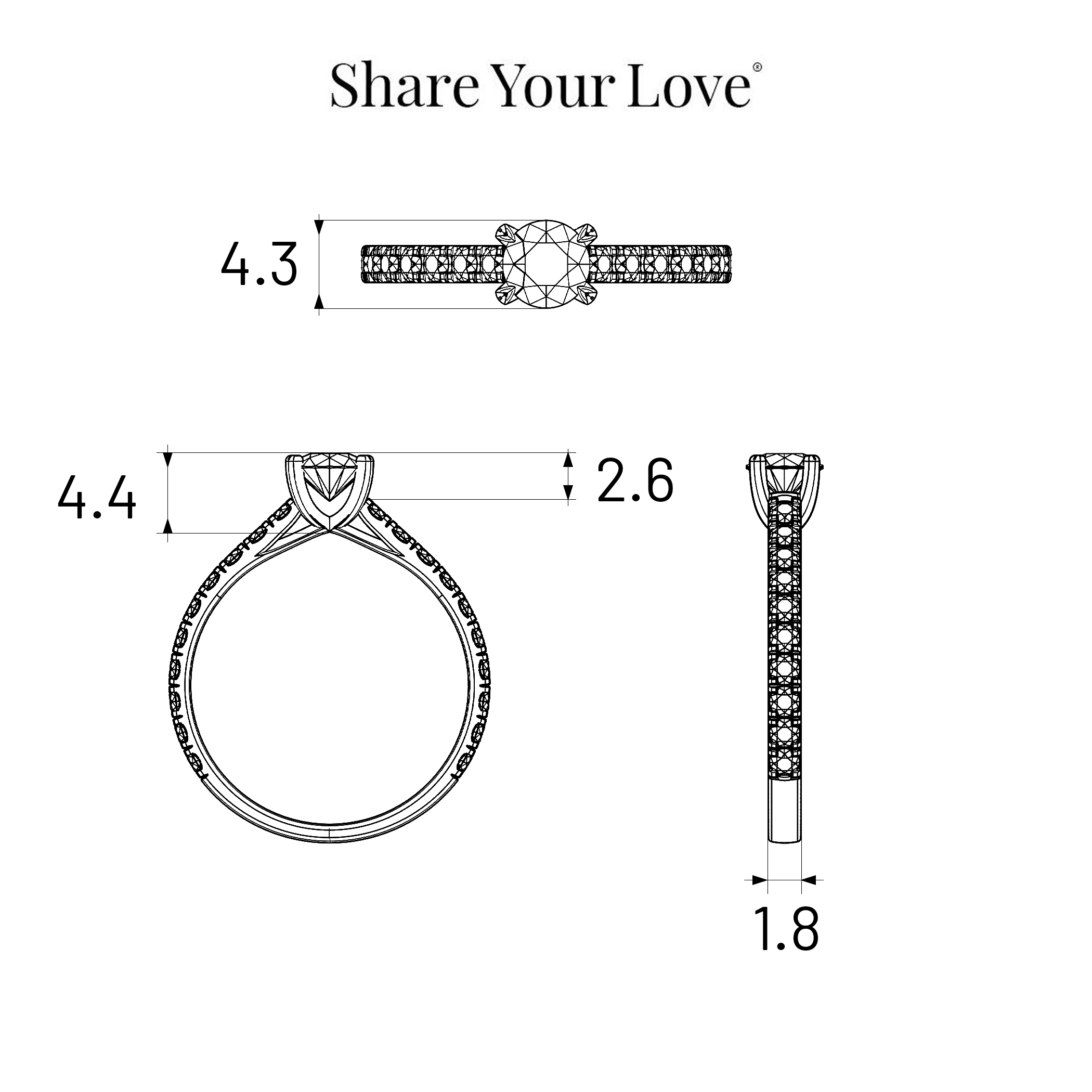 masę 0,24 ct, nieskazitelną czystość i kolor SI/H z doskonałym szlifem brylantowym. Wykonany z