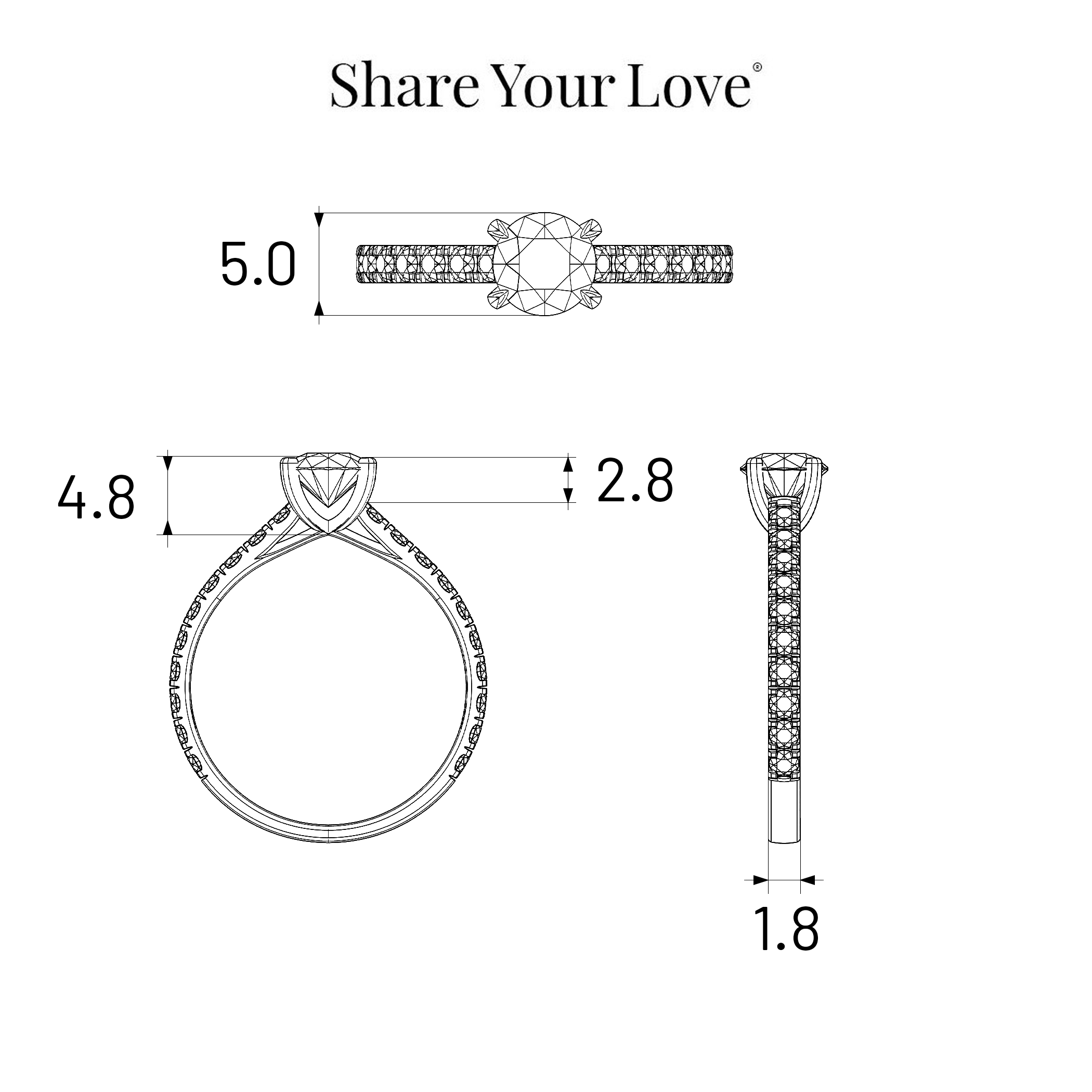 masę 0,30 ct, nieskazitelną czystość i kolor SI/H z doskonałym szlifem brylantowym. Wykonany z