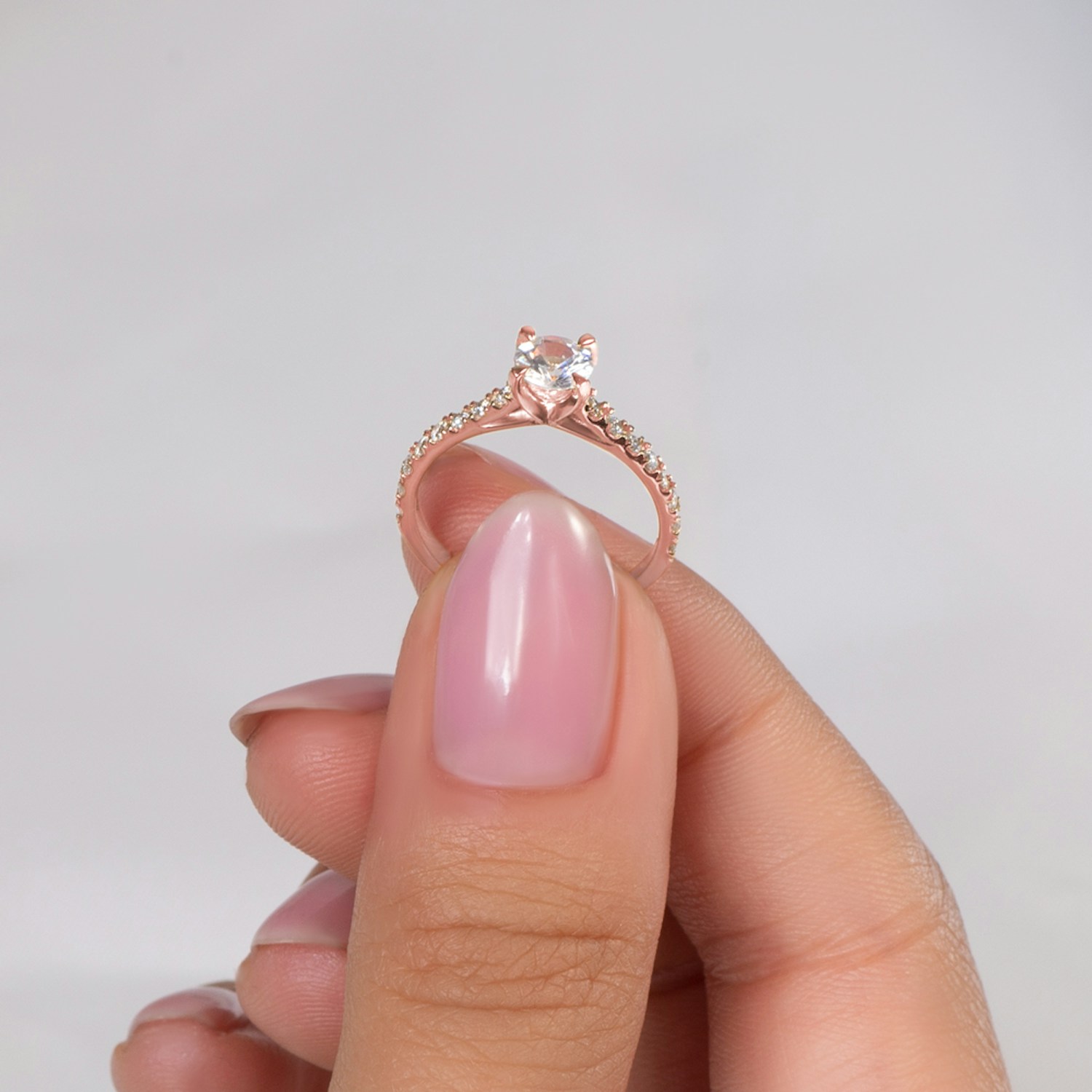 masę 0,31 ct, nieskazitelną czystość i kolor SI/H z doskonałym szlifem brylantowym. Wykonany z