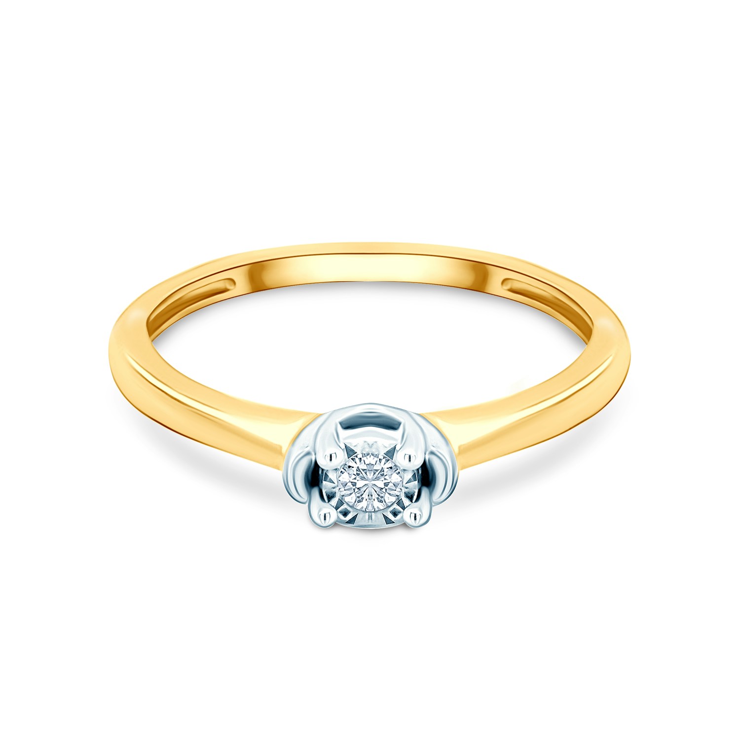 | Pierścionek zaręczynowy z diamentem o masie 0,05ct i parametrach SI2/H w szlifie brylantowym. Wykonany został z 14-karatowego dwukolorowego złota (próba 585). |