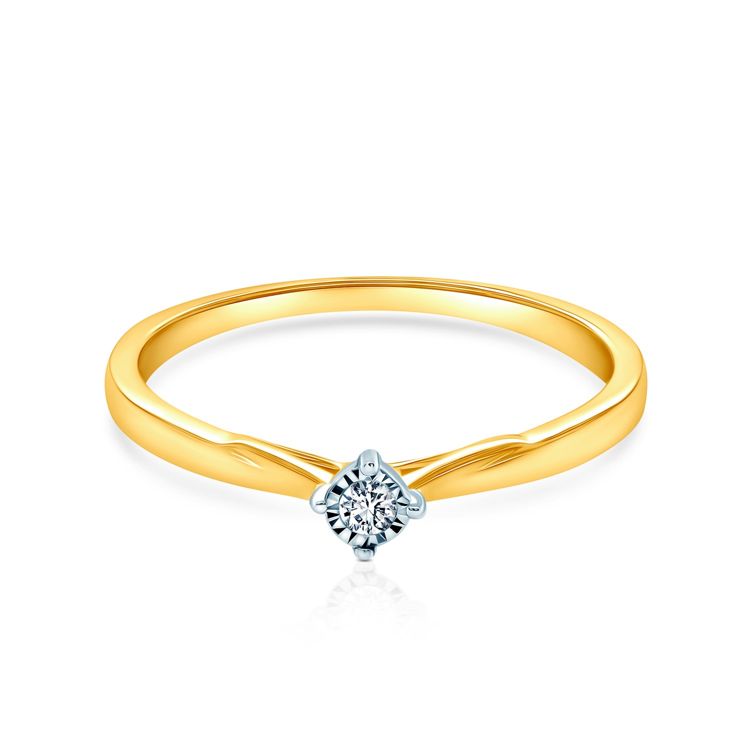 | Pierścionek zaręczynowy z diamentem o masie 0,03ct i parametrach SI2/H w szlifie brylantowym. Wykonany został z 14-karatowego żółtego złota (próba 585). |