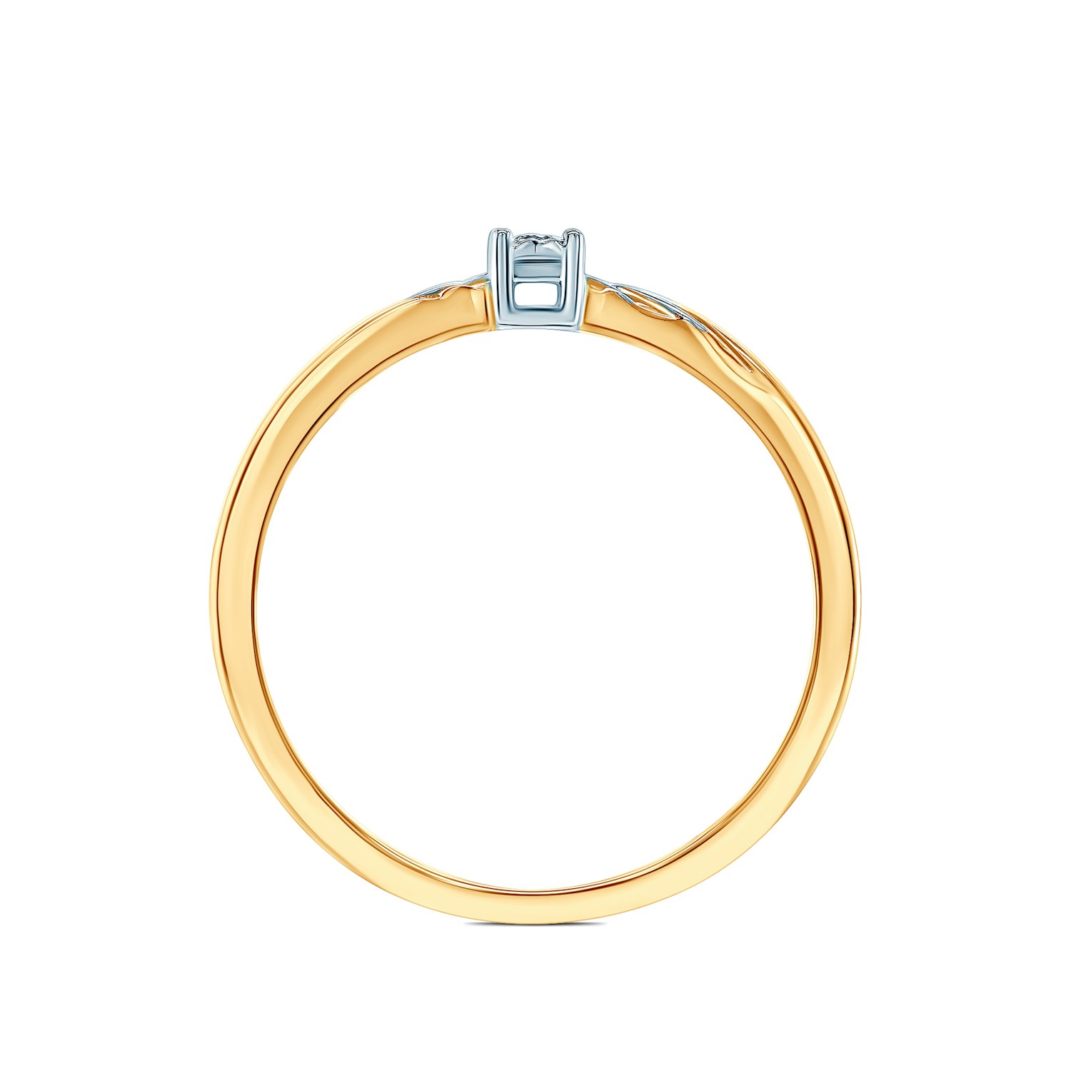 | Pierścionek zaręczynowy z diamentem o masie 0,01ct i parametrach SI2/H w szlifie brylantowym. Wykonany został z 14-karatowego dwukolorowego złota (próba 585). |