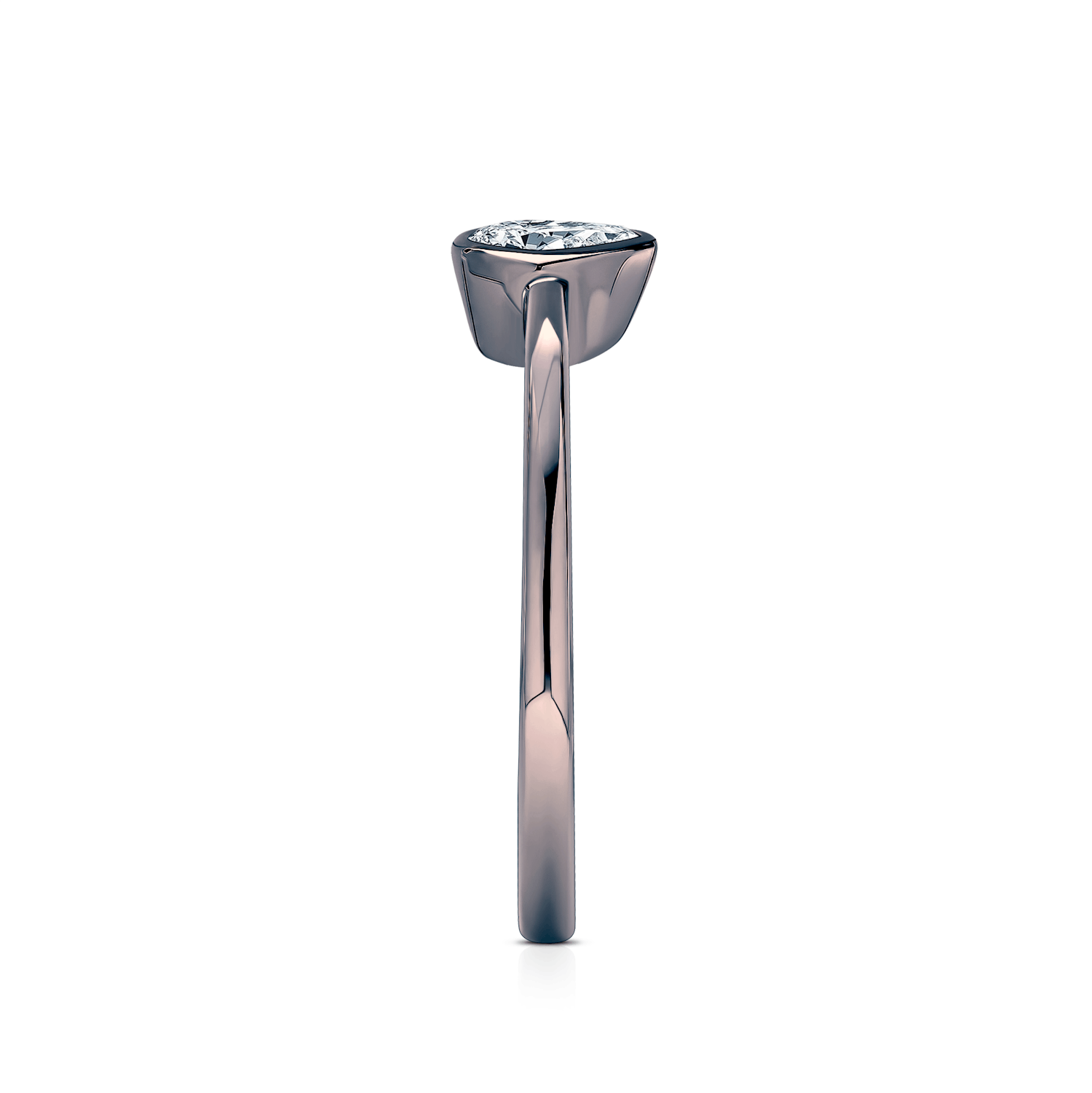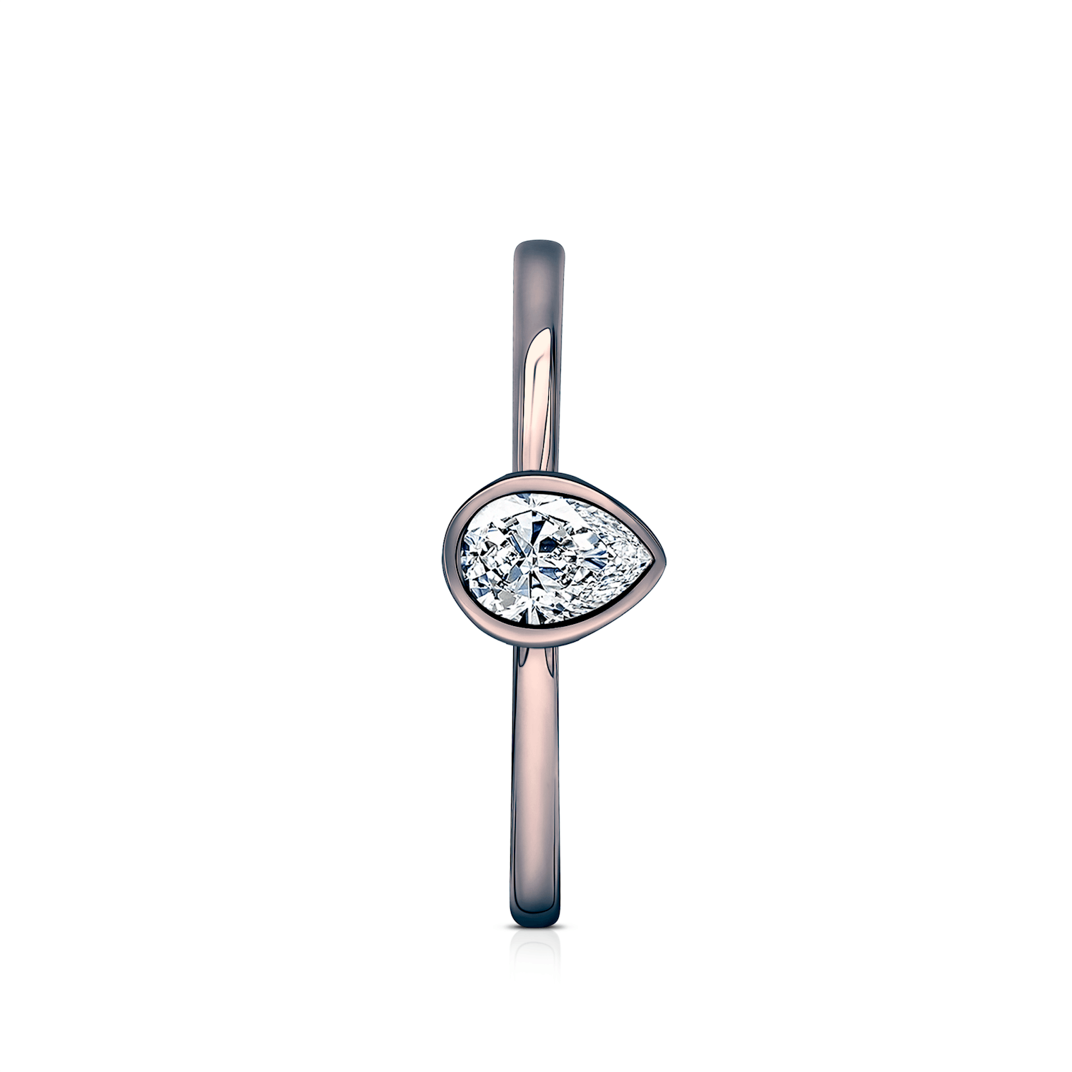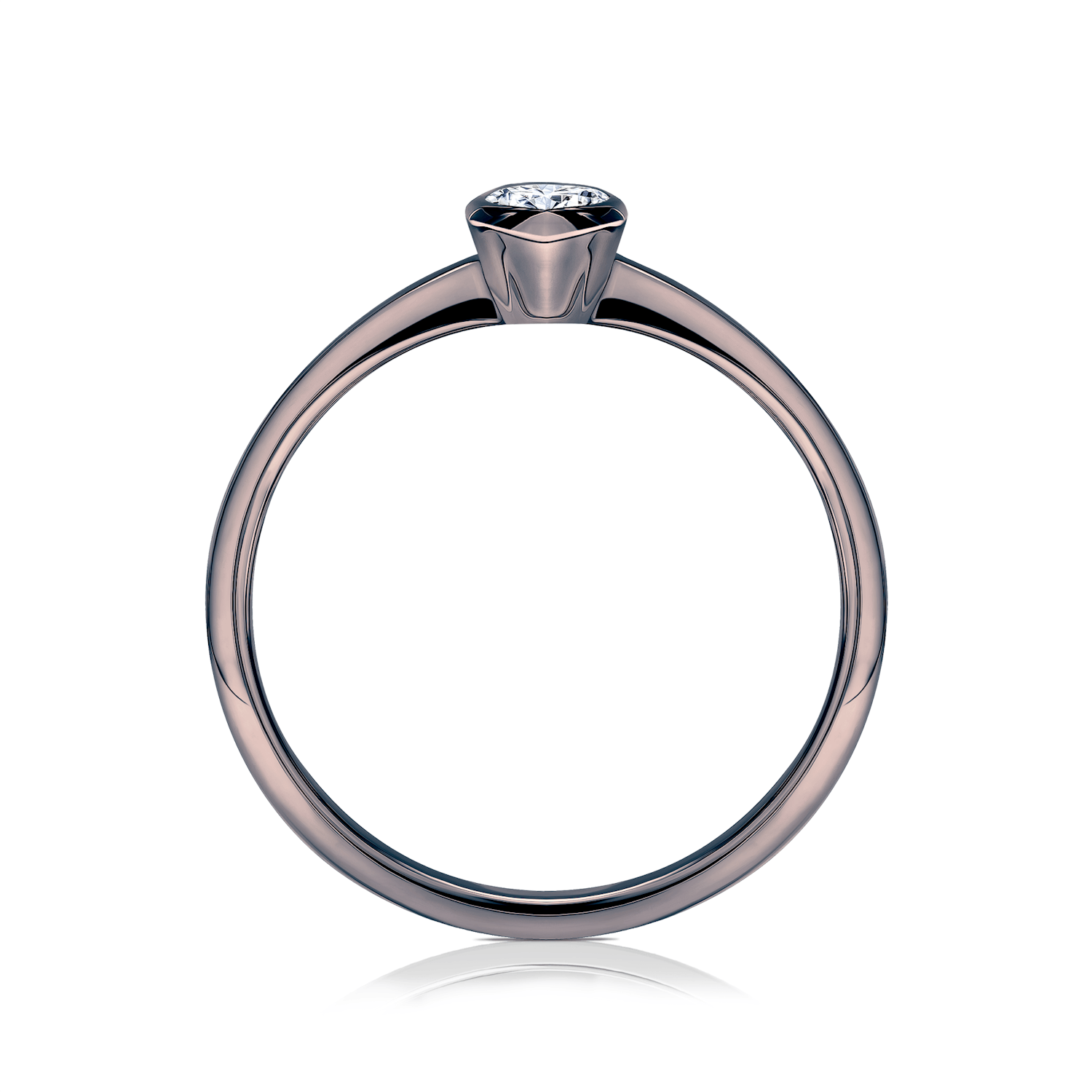 Pierścionek zaręczynowy z centralnie umieszczonym diamentem o masie 0,3 ct wysokiej czystości VS/G, o szlifie łezka. Wykonany z 14-karatowego czarnego złota (próba 0,585).