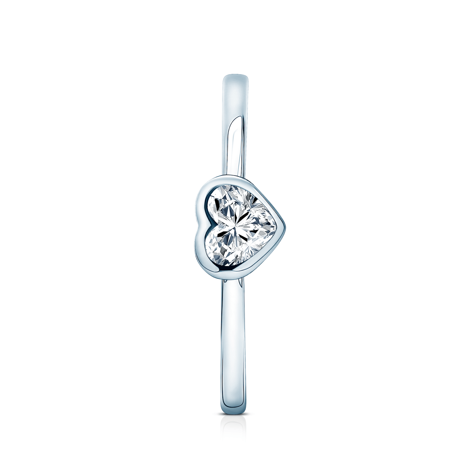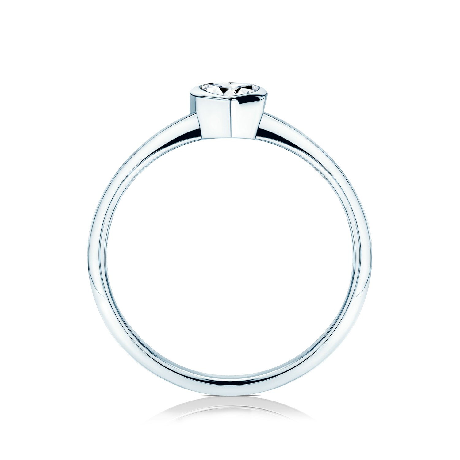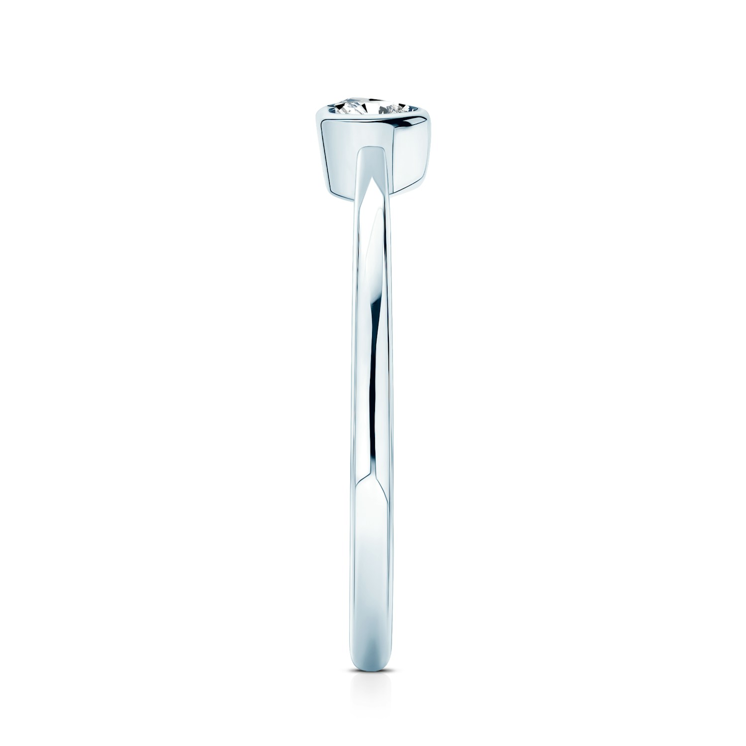 Pierścionek zaręczynowy z centralnie umieszczonym diamentem o masie 0,2 ct wysokiej czystości VS/G, o szlifie serce. Wykonany z 14-karatowego białego złota (próba 0,585).