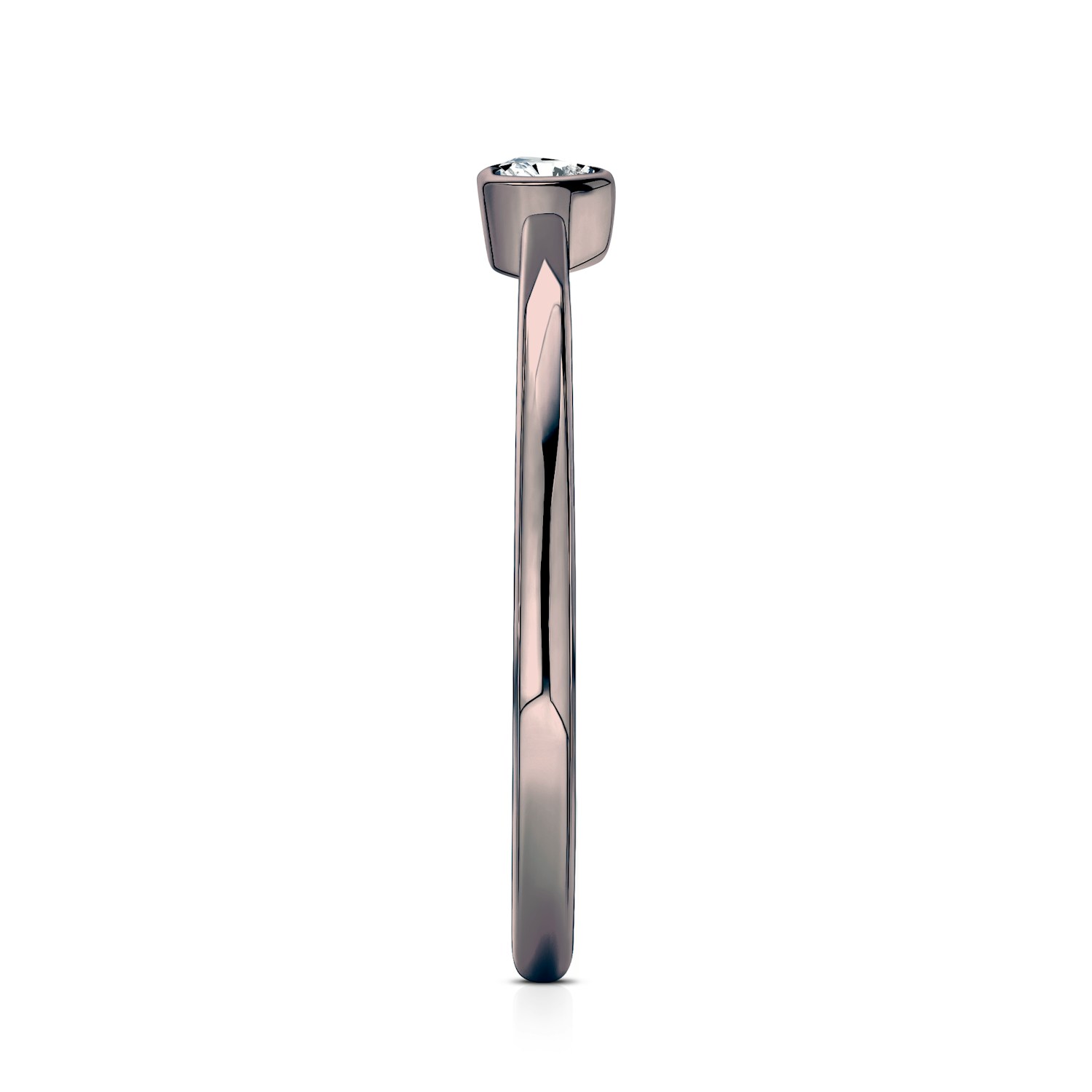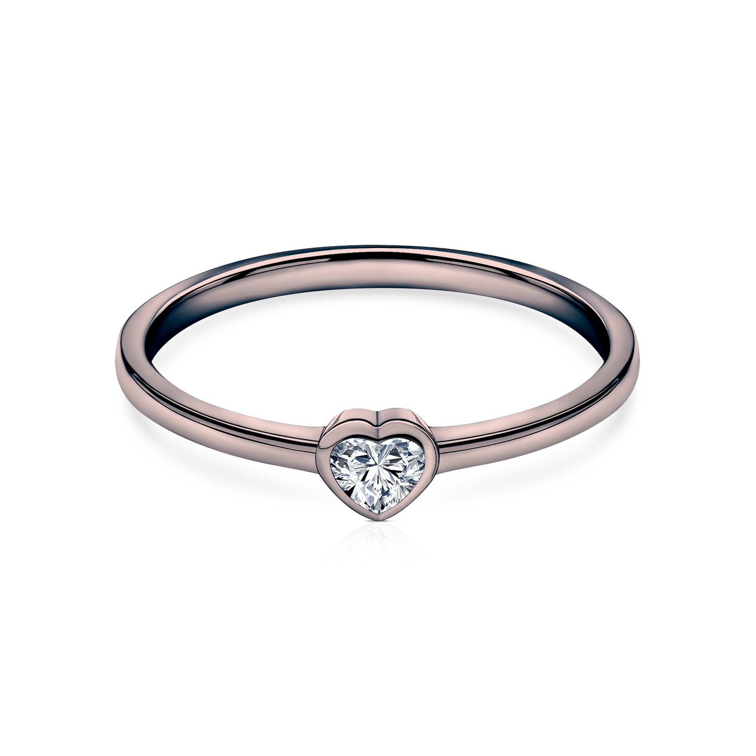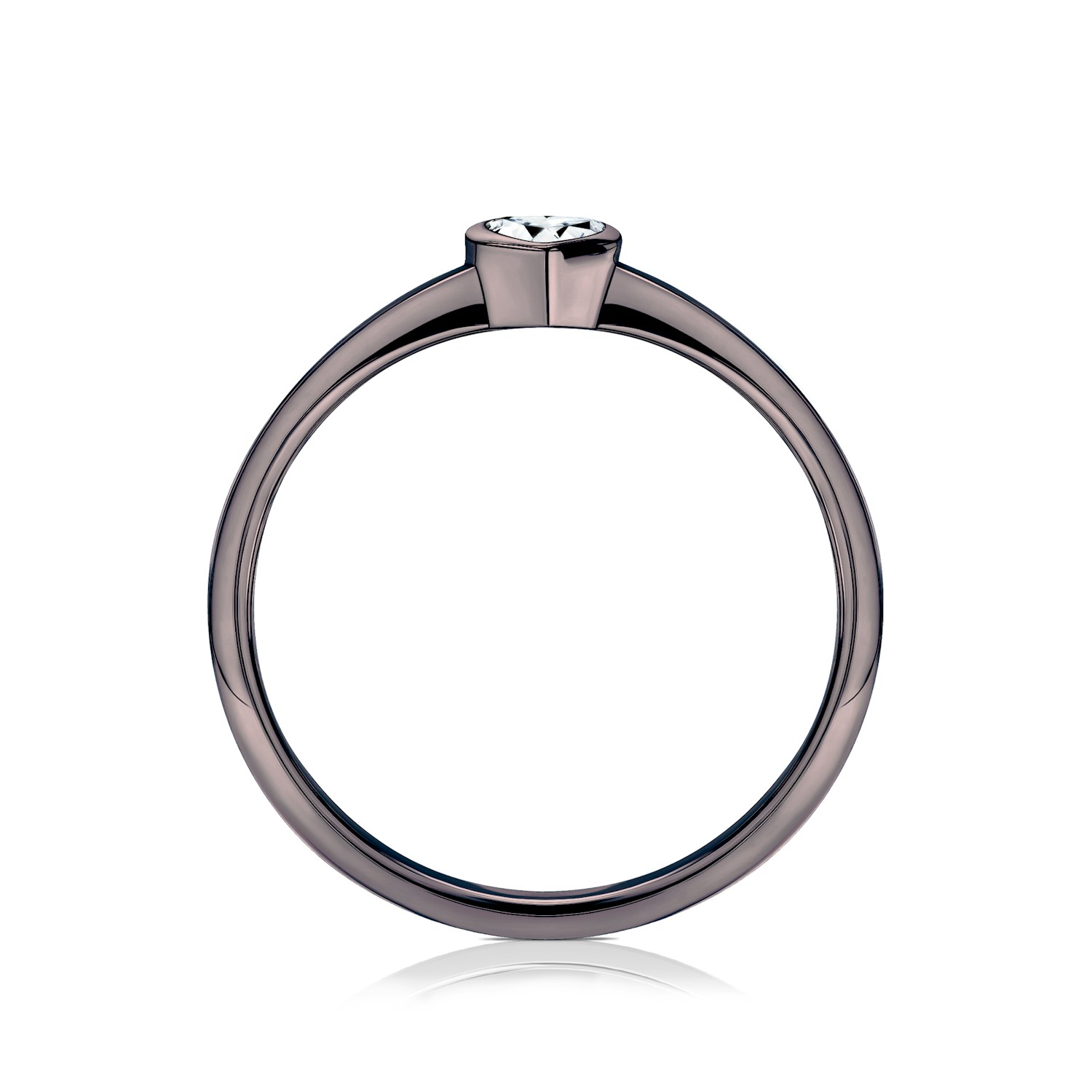 Pierścionek zaręczynowy z centralnie umieszczonym diamentem o masie 0,08 ct wysokiej czystości VS/G, o szlifie serce. Wykonany z 14-karatowego czarnego złota (próba 0,585).