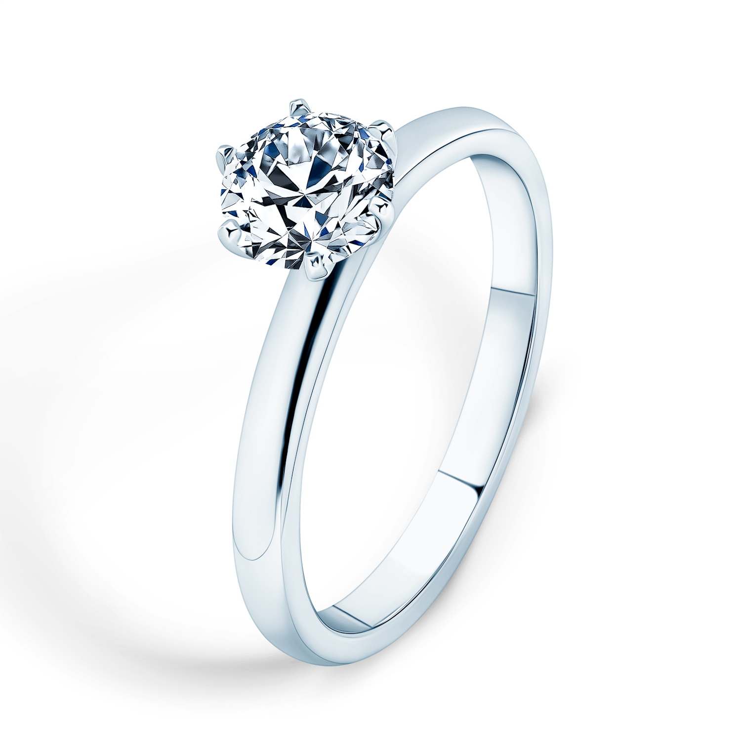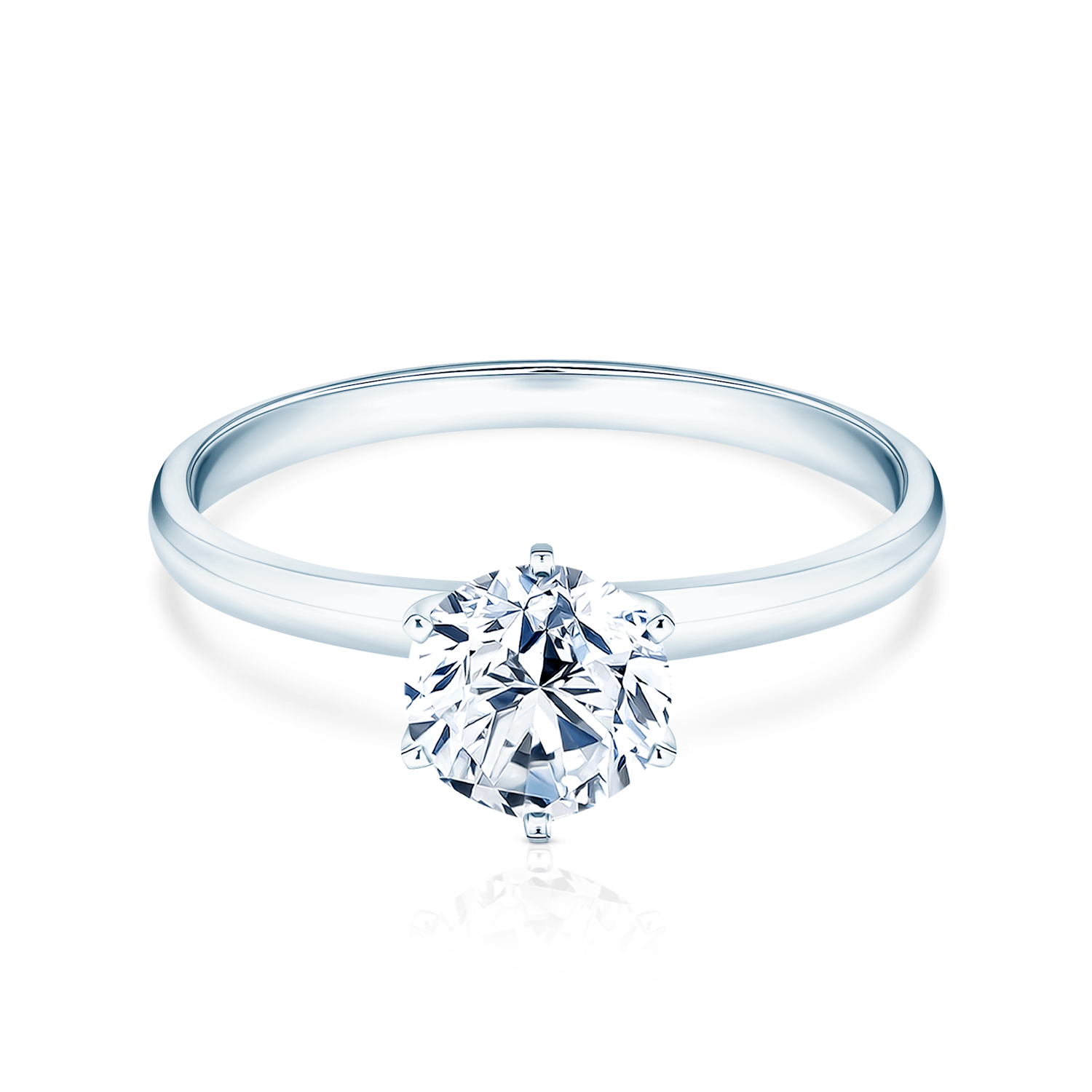 Pierścionek zaręczynowy z centralnie umieszczonym diamentem o masie 0,7 ct wysokiej czystości SI1/G, o szlifie brylantowym. Wykonany z 14-karatowego białego złota (próba 0,585).