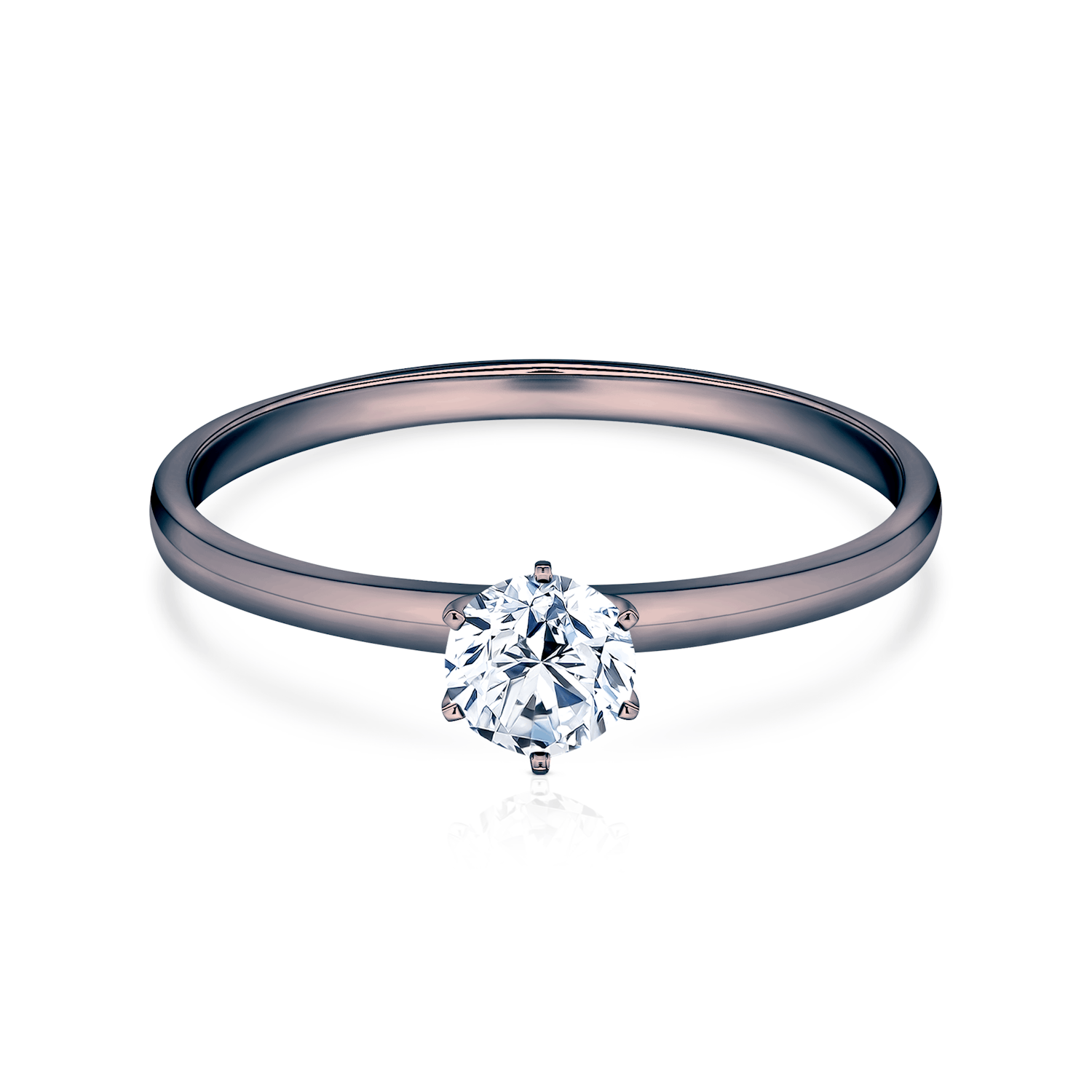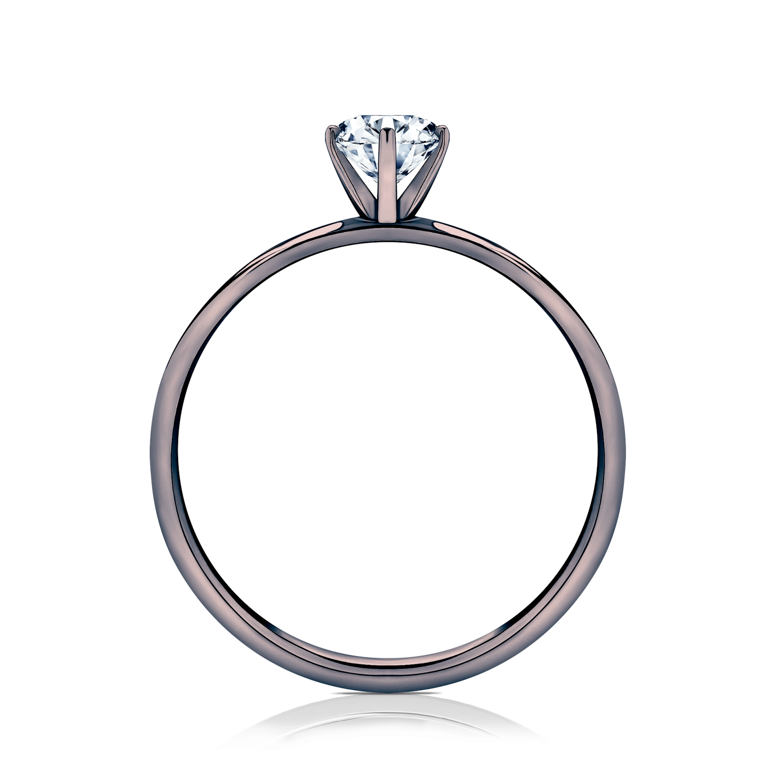 Pierścionek zaręczynowy z centralnie umieszczonym diamentem o masie 0,24 ct wysokiej czystości SI1/G, o szlifie brylantowym. Wykonany z 14-karatowego czarnego złota (próba 0,585).