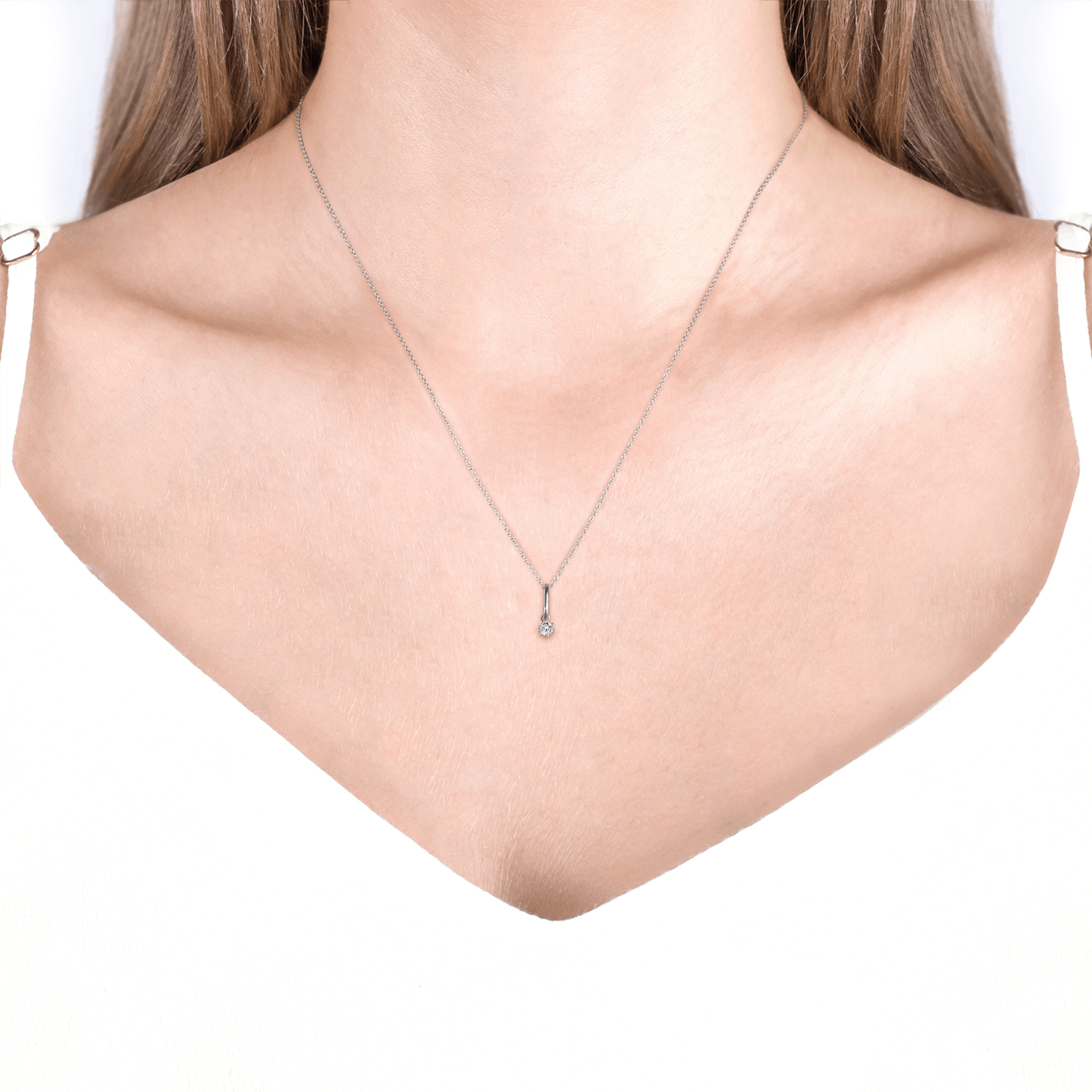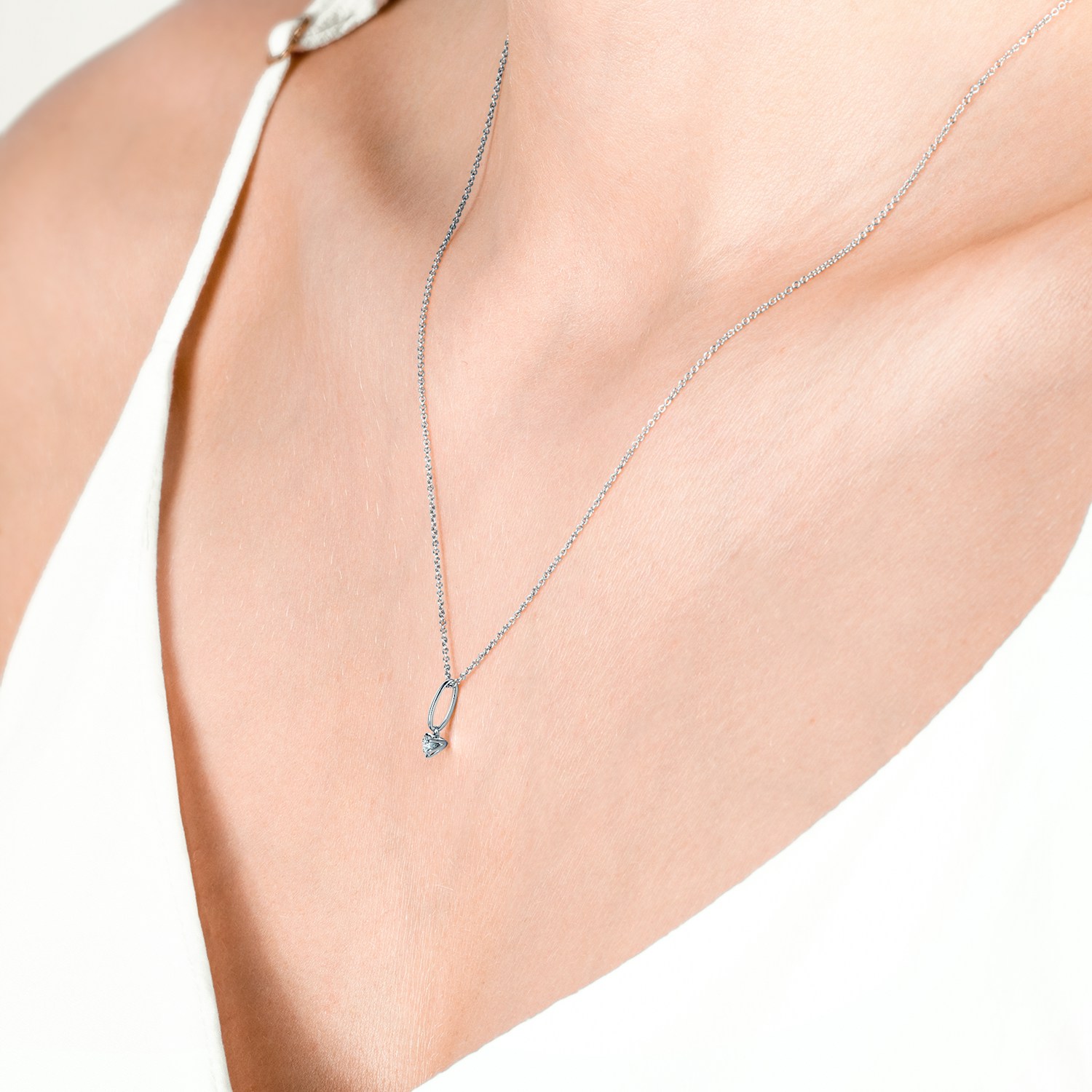 Zawieszka wykonana z 14-karatowego białego złota (próba 585). W zawieszce został osadzony diament o masie 0,10 ct i szlifie brylantowym.