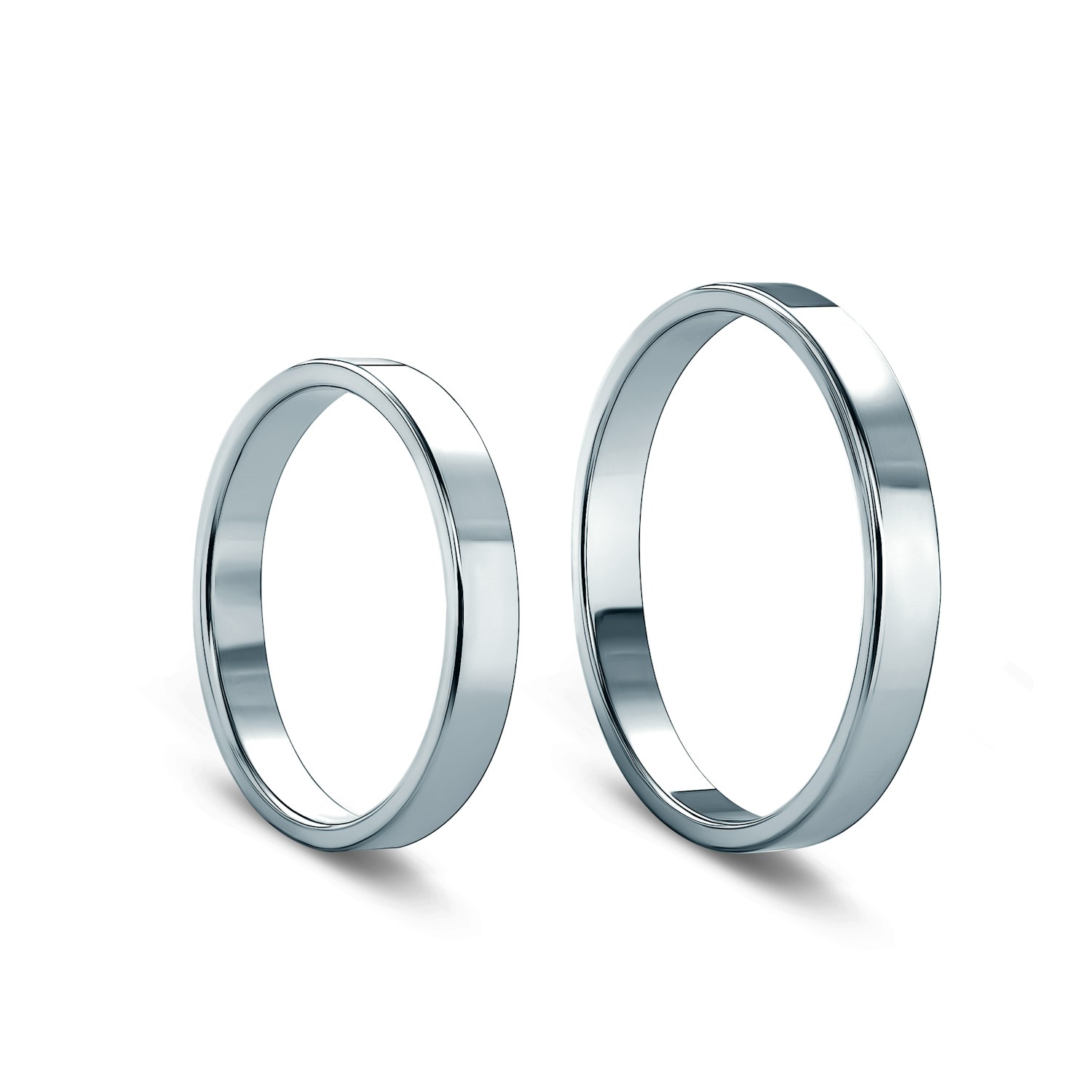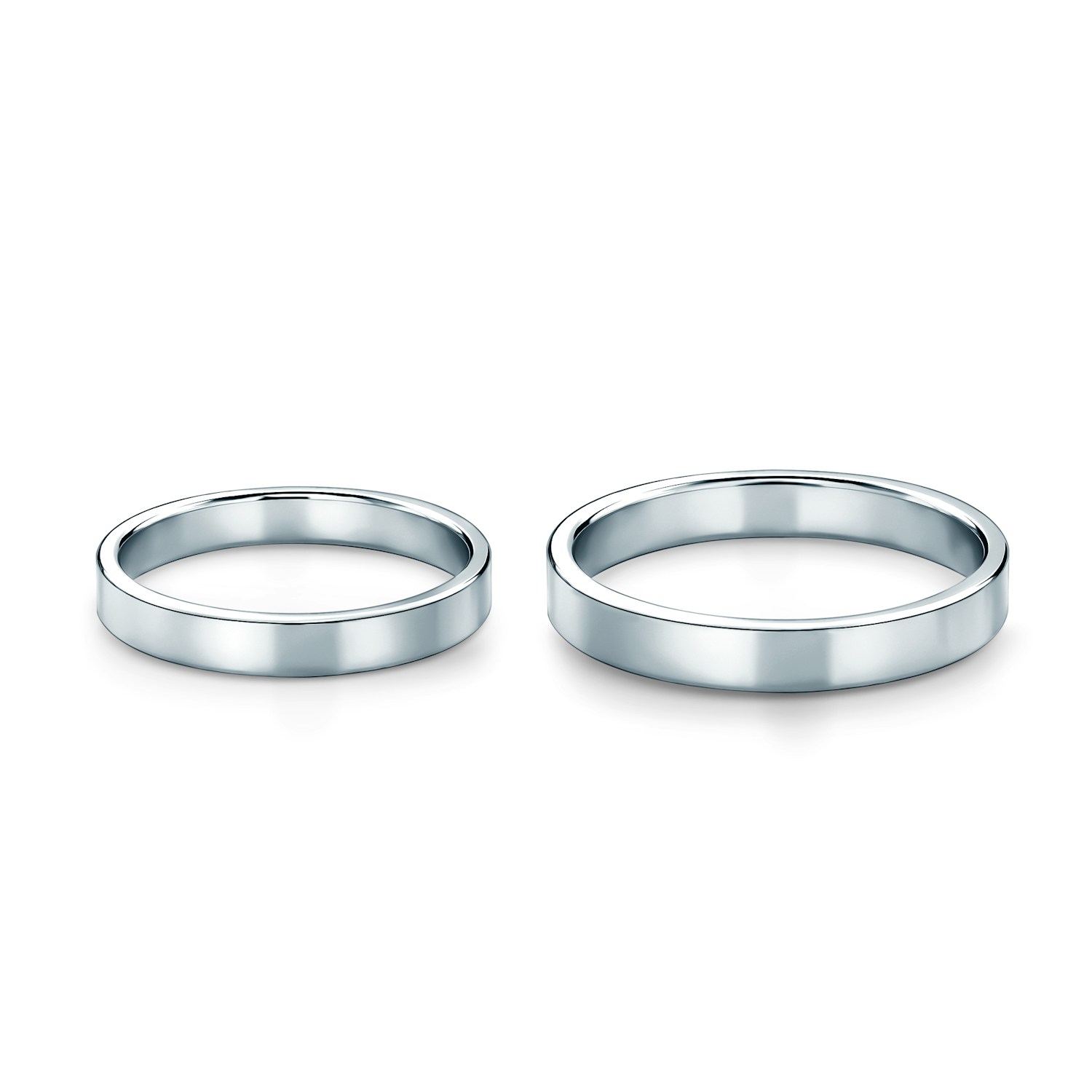 Obrączki ślubne płaskie o klasycznym wzorze, wykonane z platyny próby 950, o szerokości 3 mm.