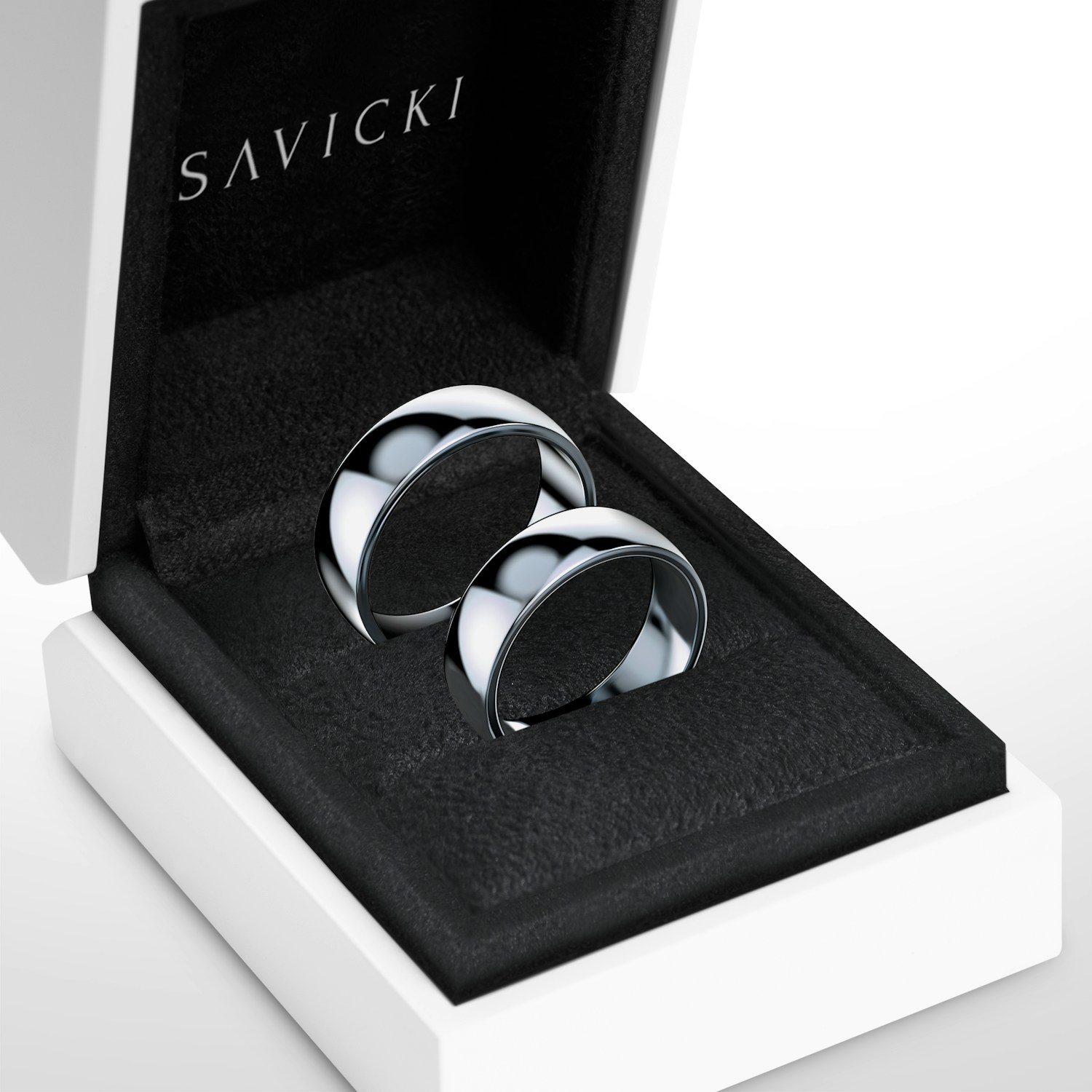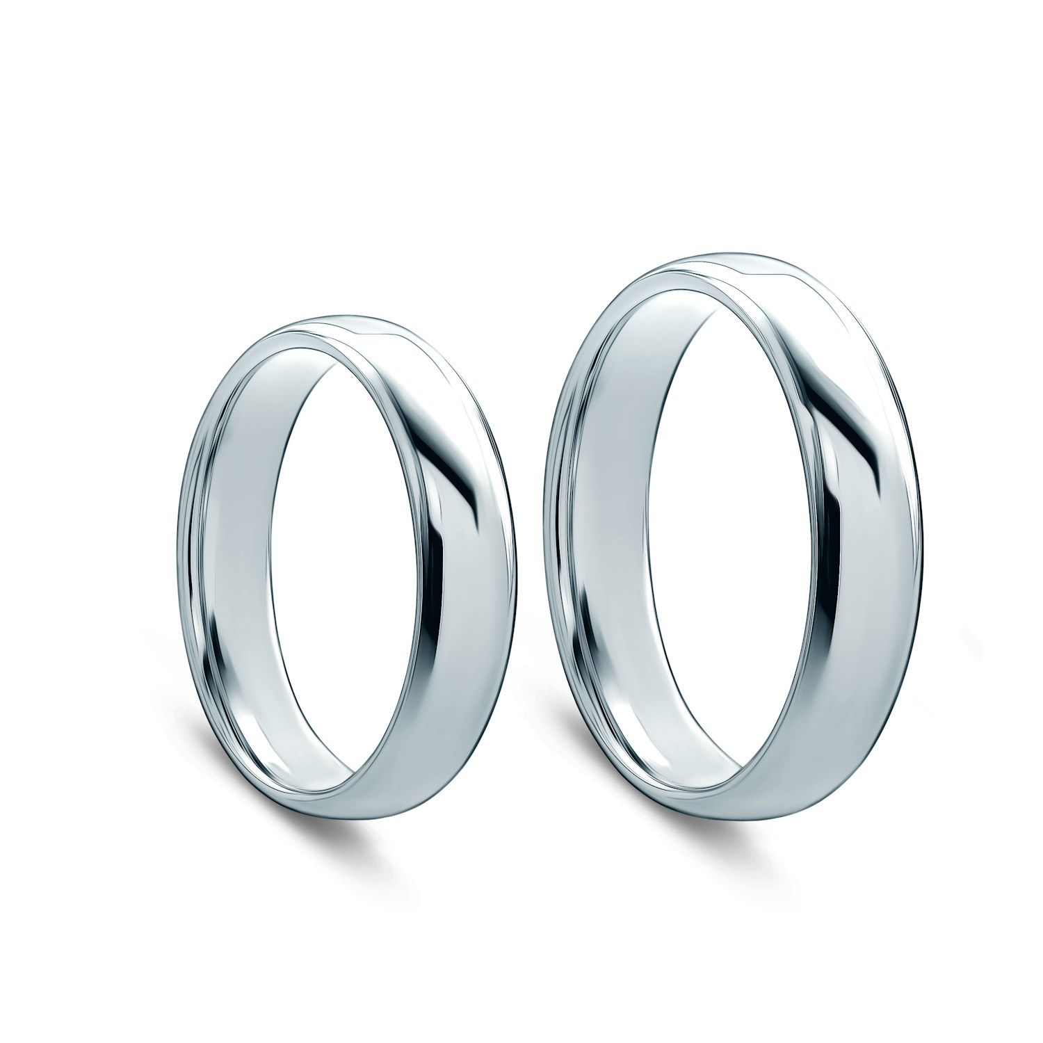 Obrączki ślubne półokrągłe o klasycznym wzorze, wykonane z platyny próby 950, o szerokości 6 mm.