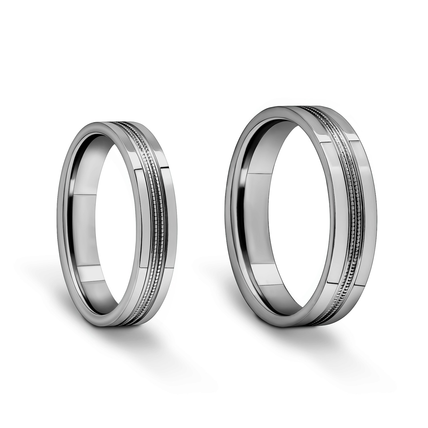 Obrączki ślubne wykonane z czystego tytanu. Obrączka damska o szerokości 4 mm. Męska obrączka o szerokości 5 mm.