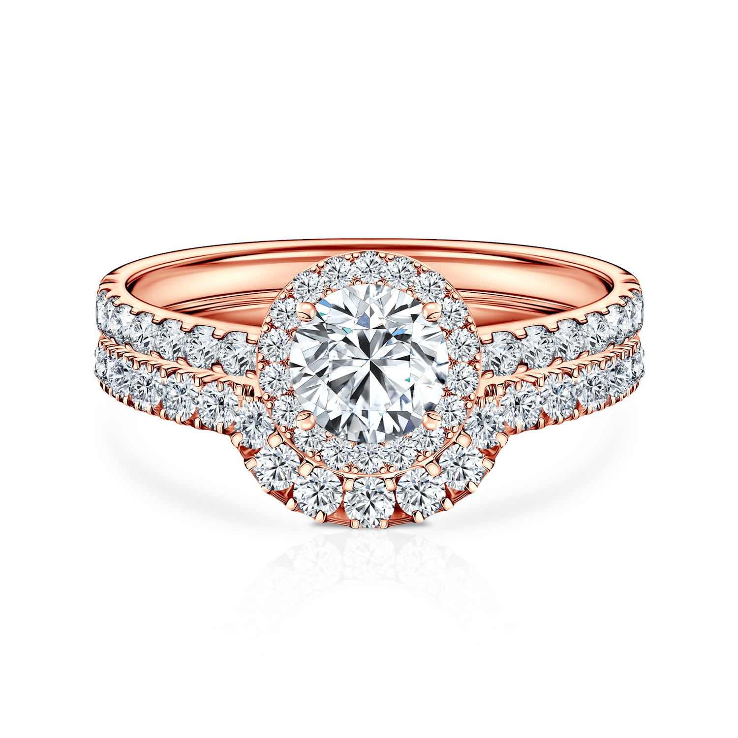 Specjalnie wyprofilowana obrączka idealnie wpasowuje się w pierścionek zaręczynowy, tworząc jedyną taką kompozycję biżuterii.