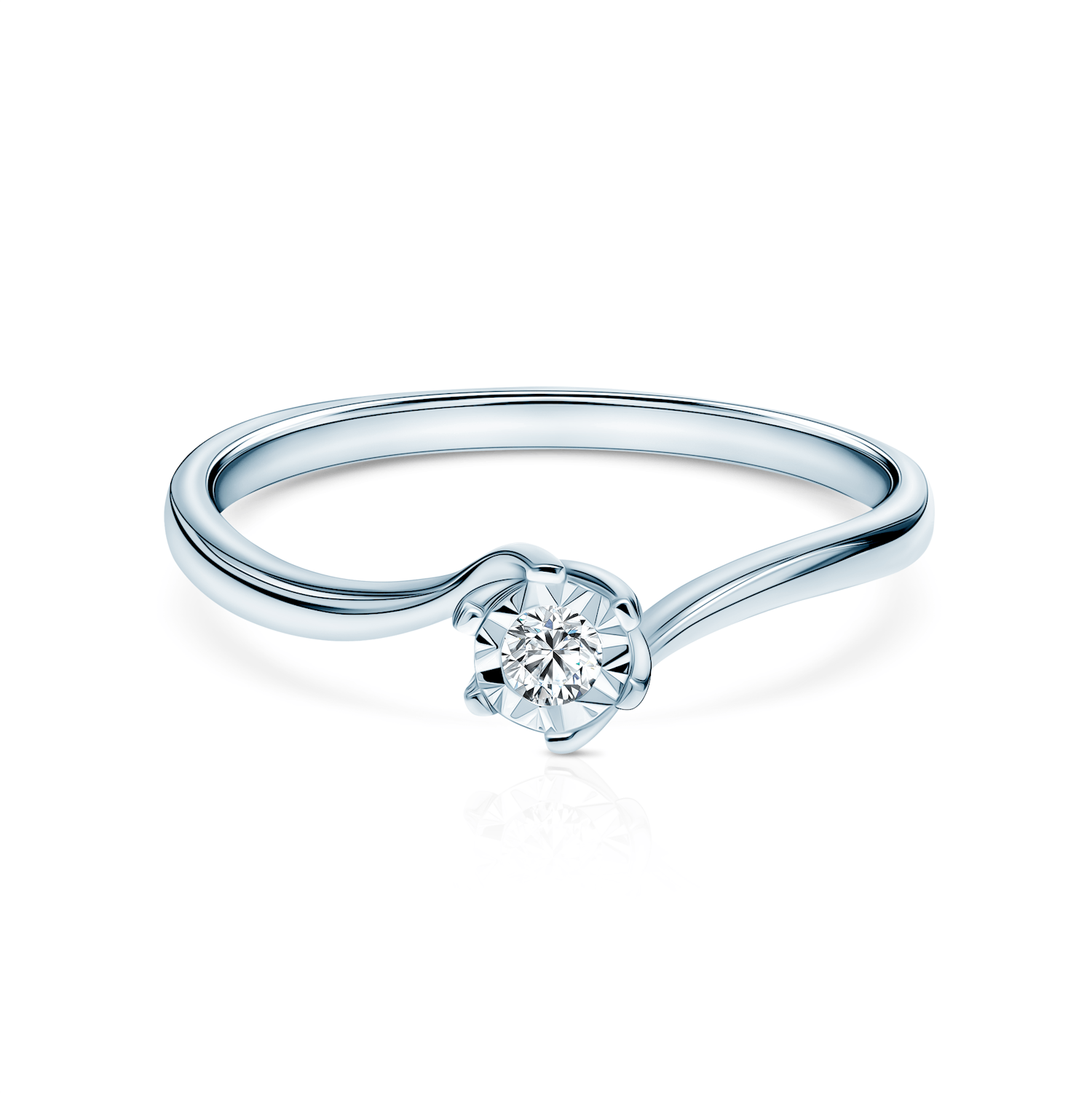 Pierścionek zaręczynowy z diamentem o czystości i barwie SI2/H. Wykonany z 14-karatowego białego złota (próba 585).