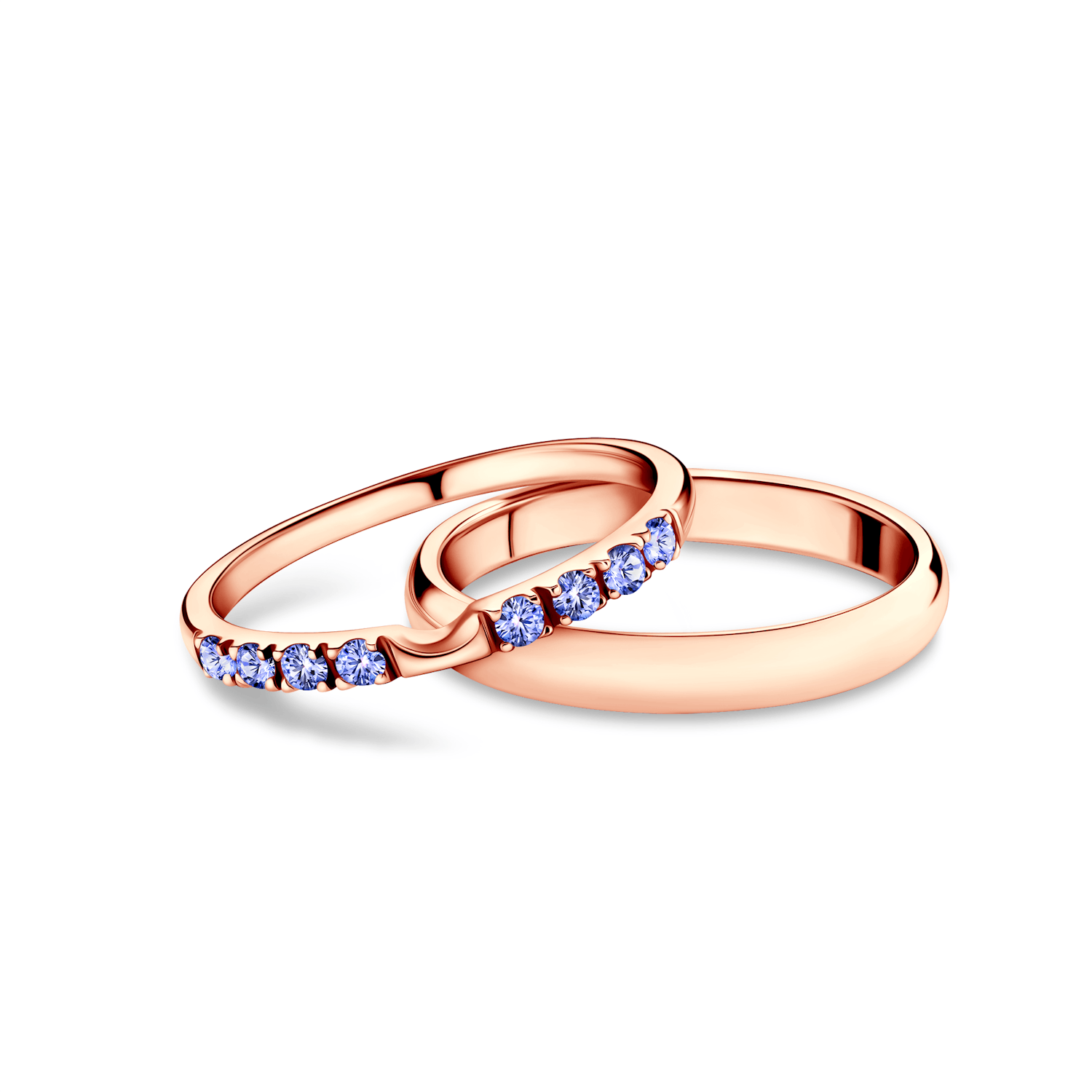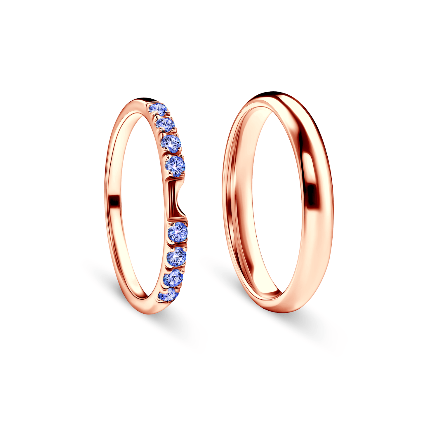 Specjalnie wyprofilowana obrączka idealnie wpasowuje się w pierścionek zaręczynowy, tworząc jedyną taką kompozycję biżuterii.