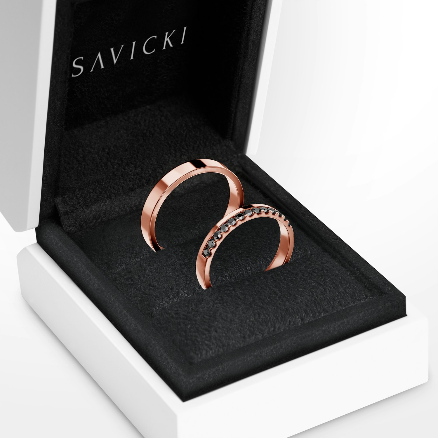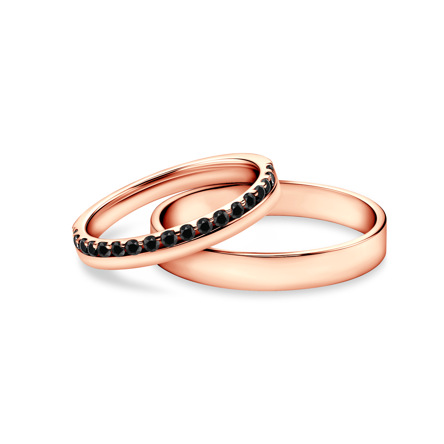 Specjalnie wyprofilowana obrączka idealnie wpasowuje się w pierścionek zaręczynowy, tworząc jedyną taką kompozycję biżuterii.