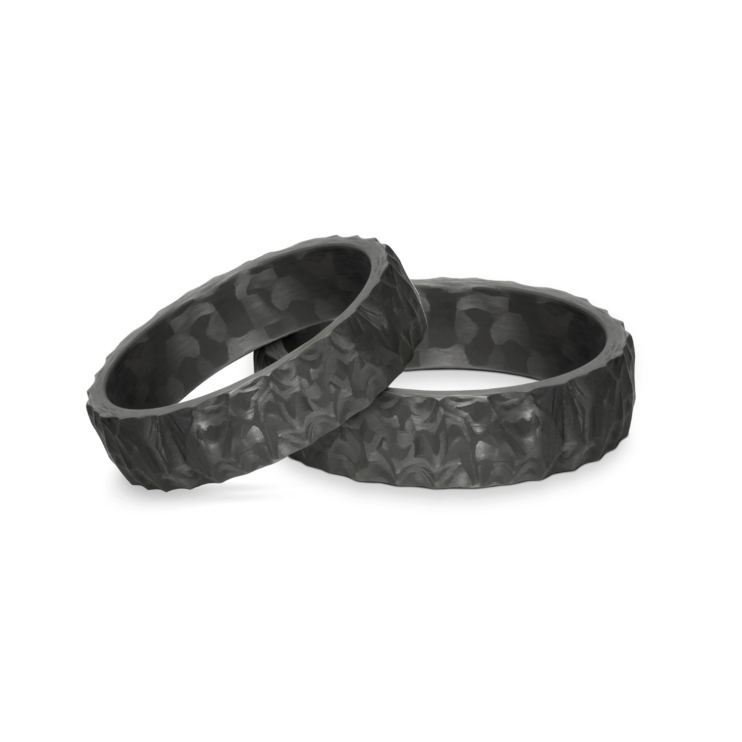 Obrączki ślubne półokrągłe wykonane z carbonu strukturalnego.
