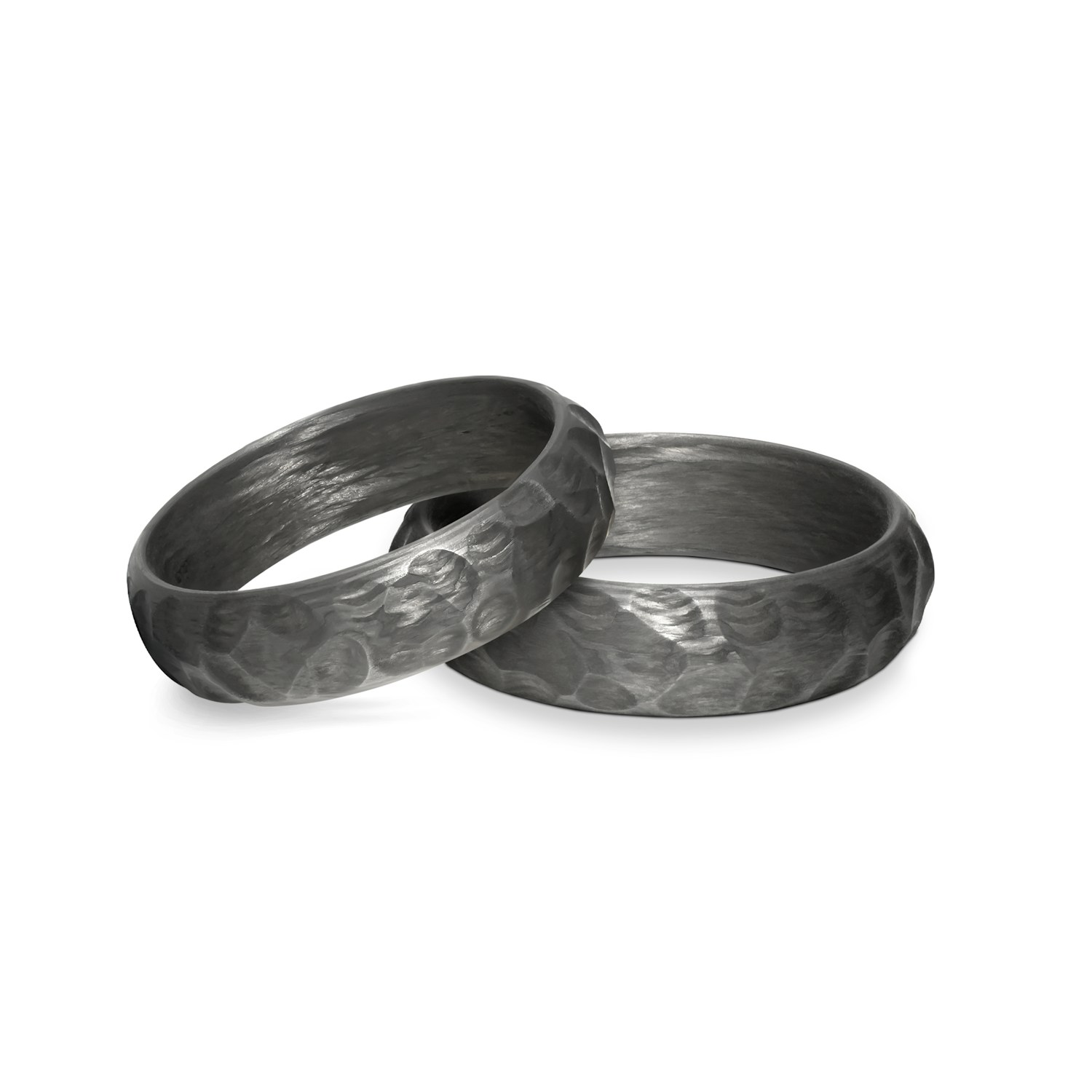 Obrączki ślubne półokrągłe wykonane z carbonu strukturalnego.