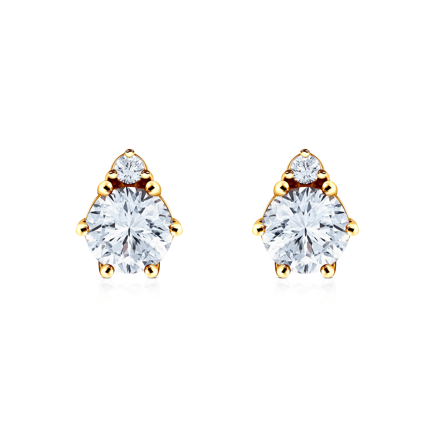 Kolczyki Savicki wykonane z żółtego złota (próba 585). W kolczykach zostały osadzone 2 białe szafiry o łącznej masie 1,2ct i 2 diamenty o łącznej masie 0,03 ct.