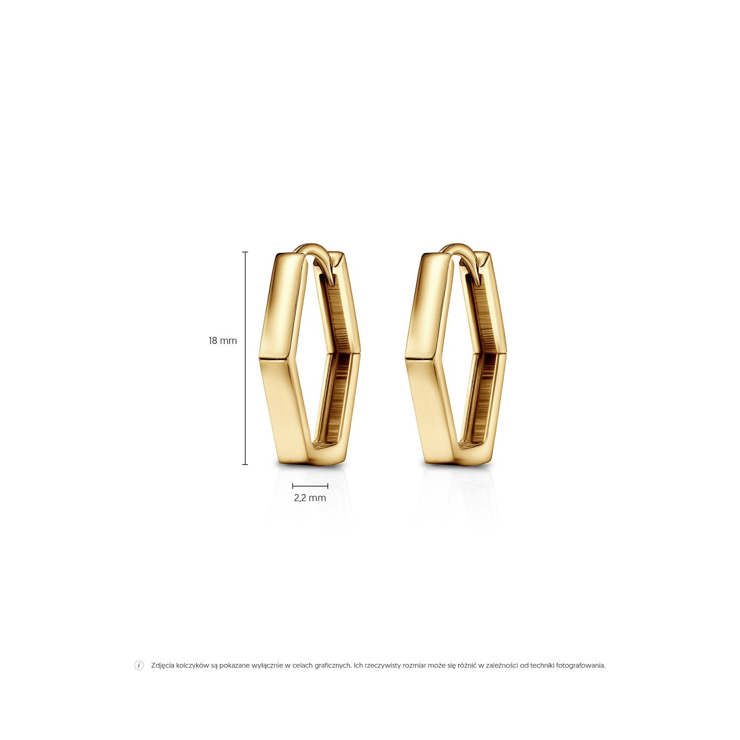 Kolczyki Savicki wykonane żółtego złota (próba 585). Średnica kolczyków wynosi 18mm a szerokość 2,2mm.
