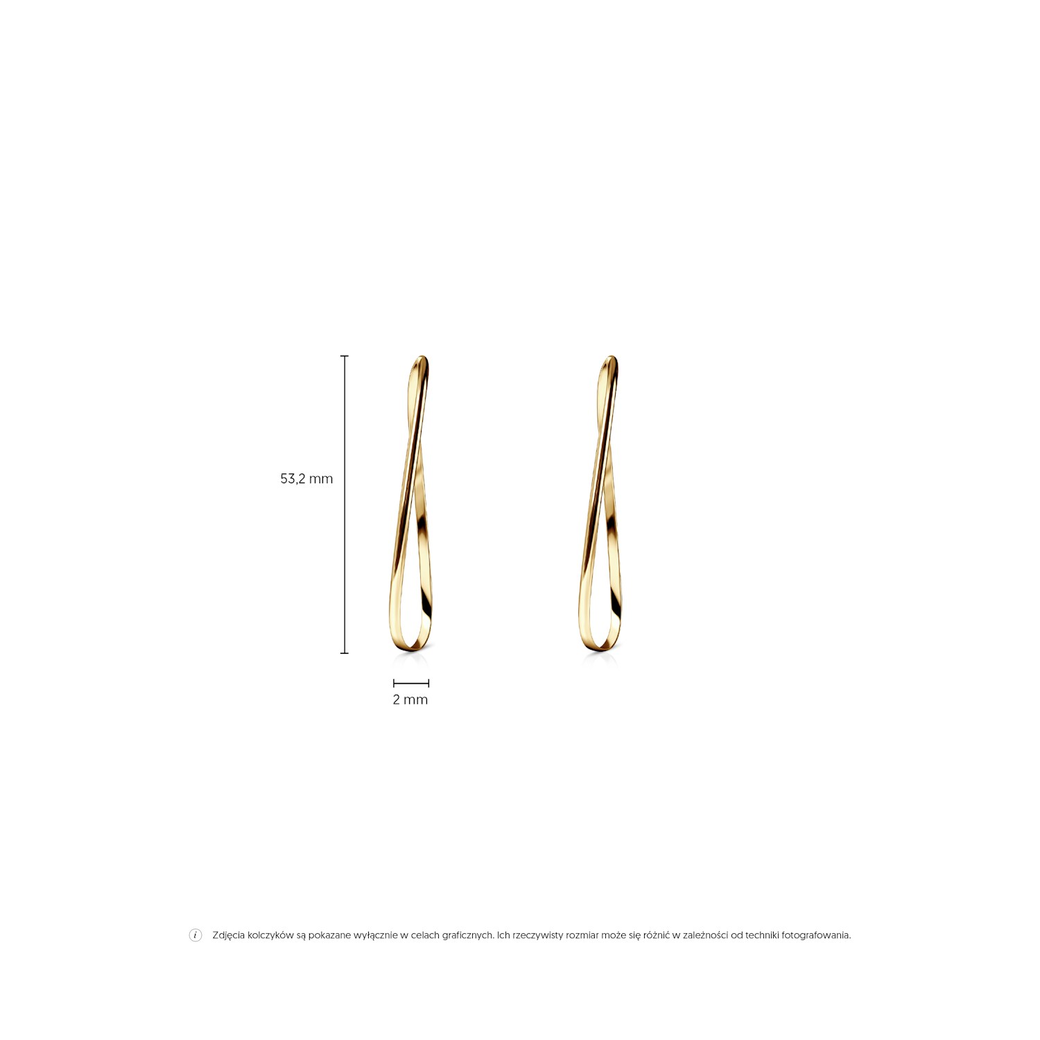 Kolczyki Savicki wykonane żółtego złota (próba 585). Kolczyki mają wymiar 53,2x21,3mm, a ich szerokość wynosi 2,2mm.