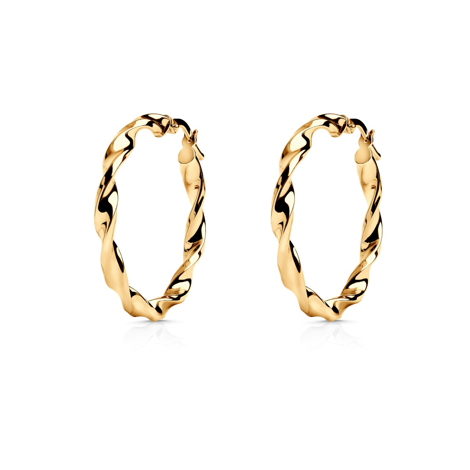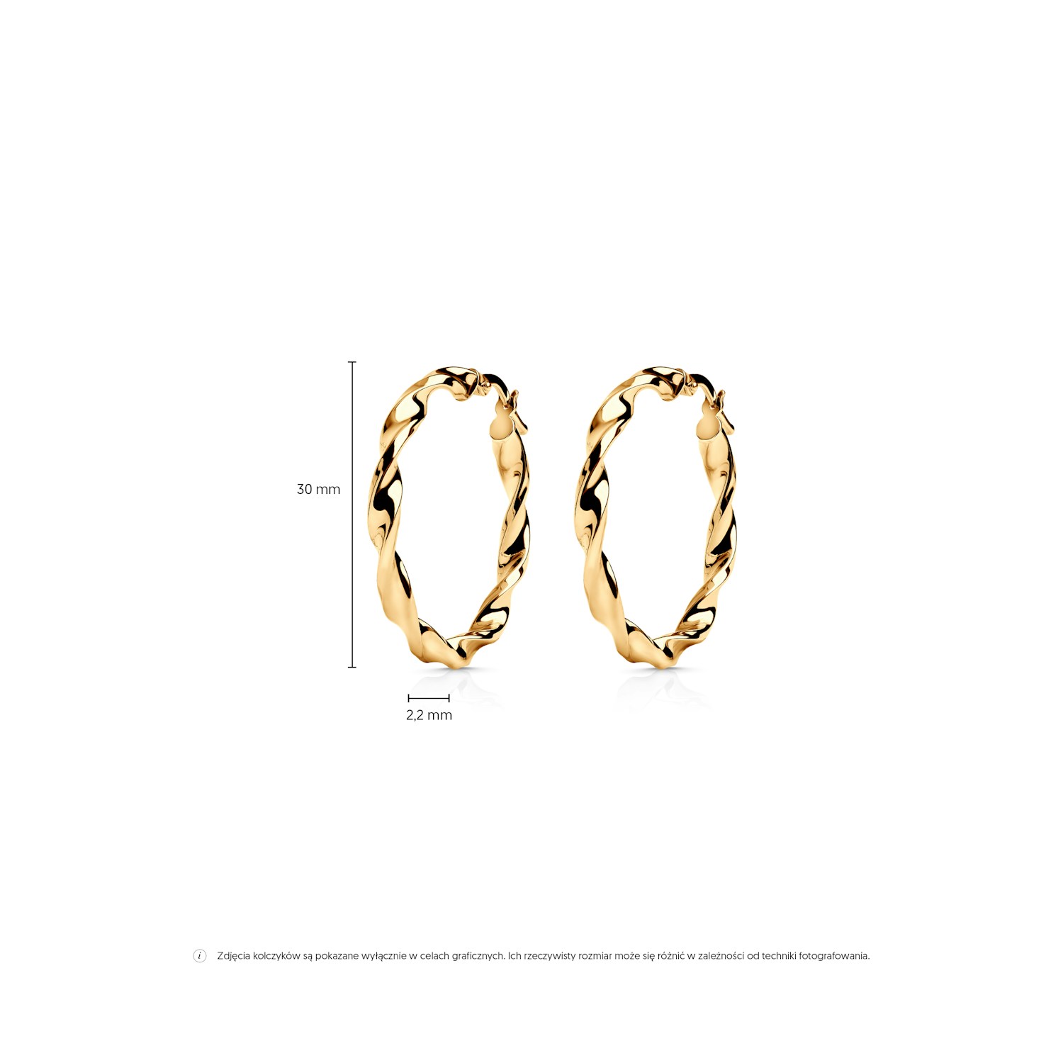 Średnica kolczyków wynosi 30 mm, a szerokość 3,2 mm, co sprawia, że są one delikatne, lecz zauważalne.