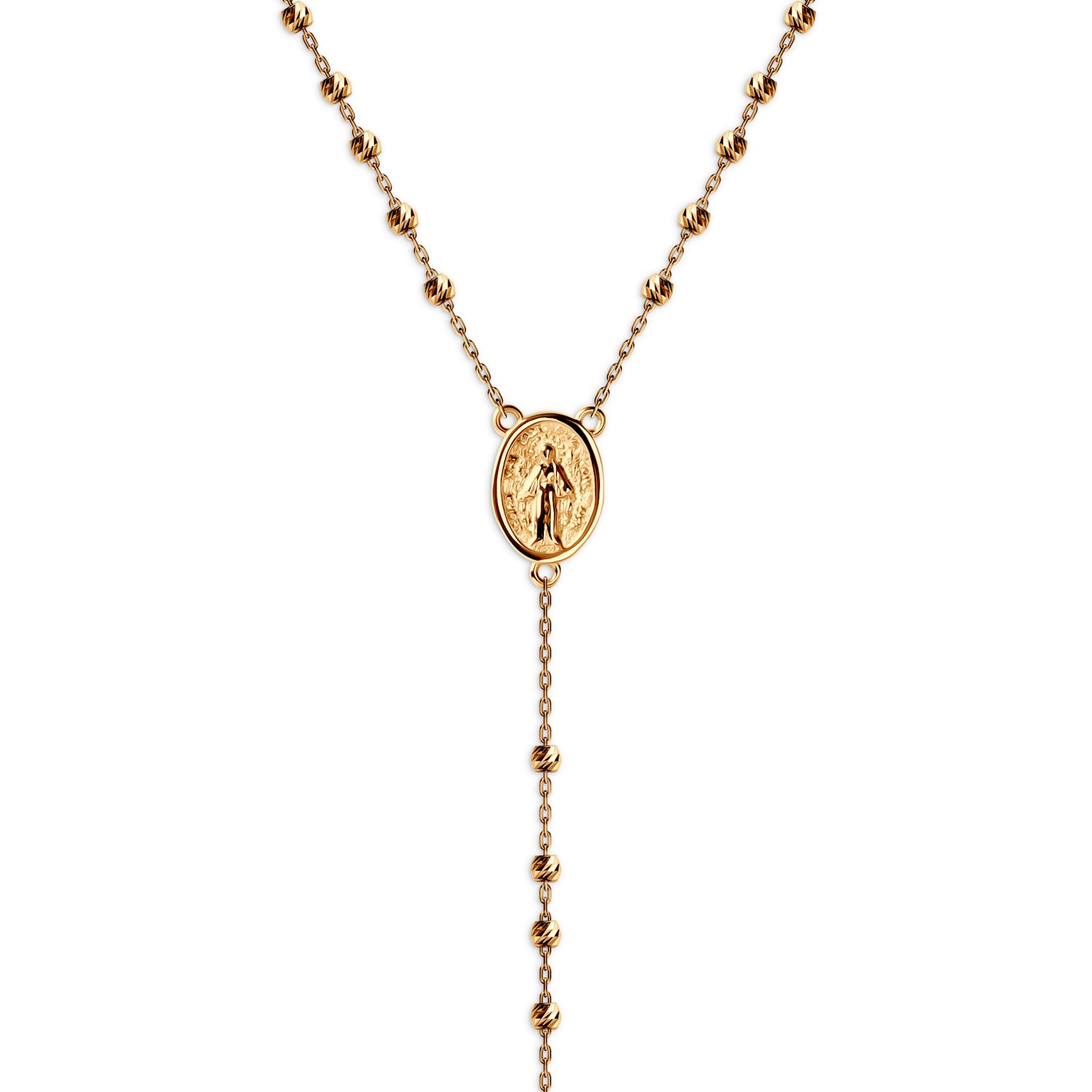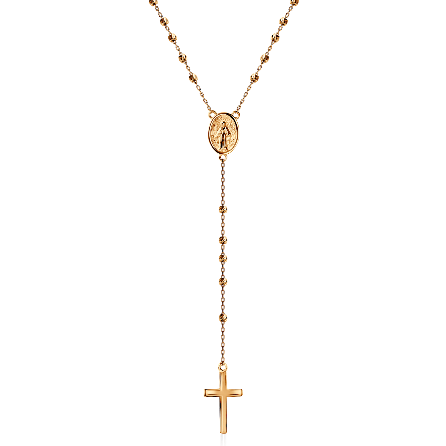 Wisiorek w kształcie krzyża o wymiarach 19x10,7 mm idealnie harmonizuje z medalionem, tworząc subtelną i stylową kompozycję.