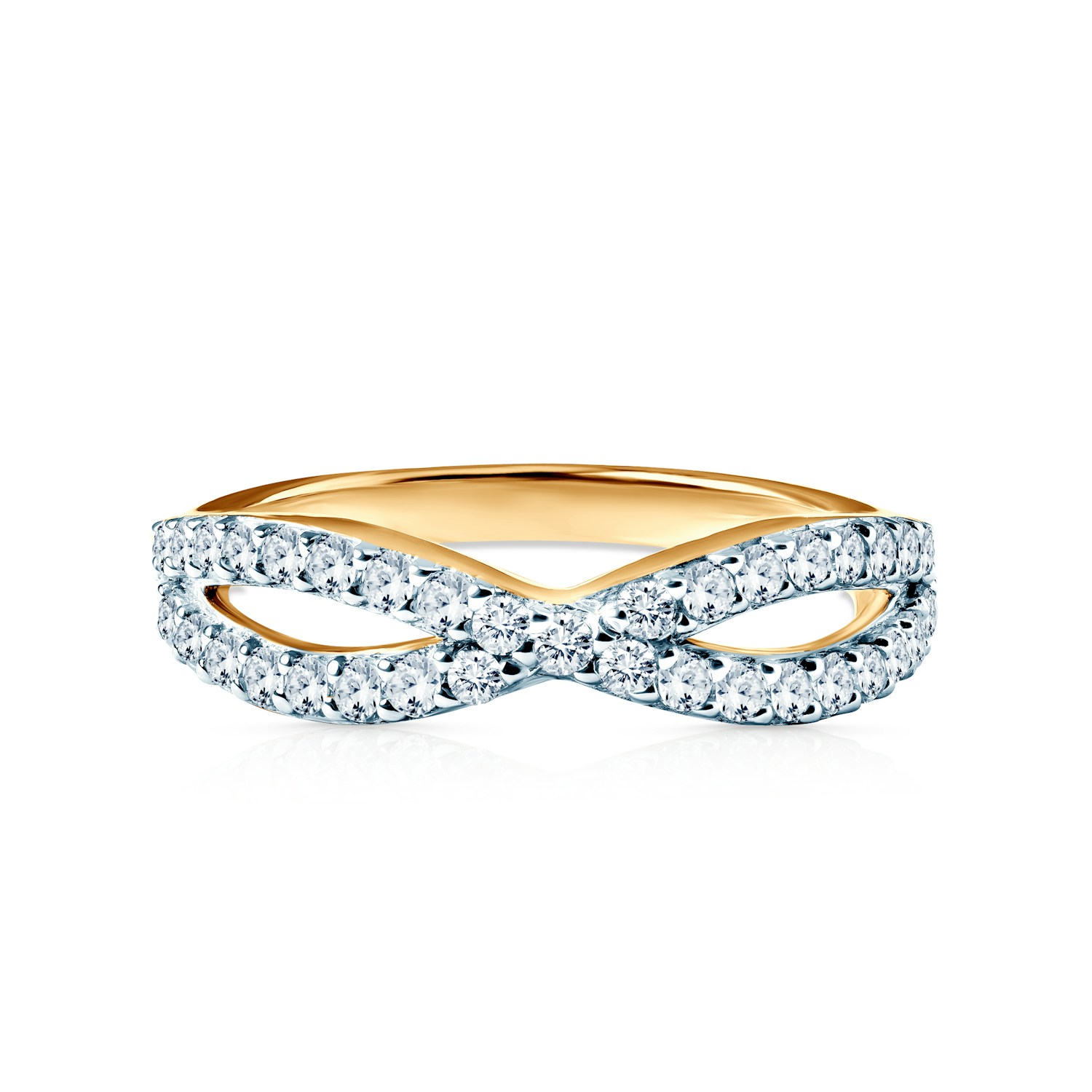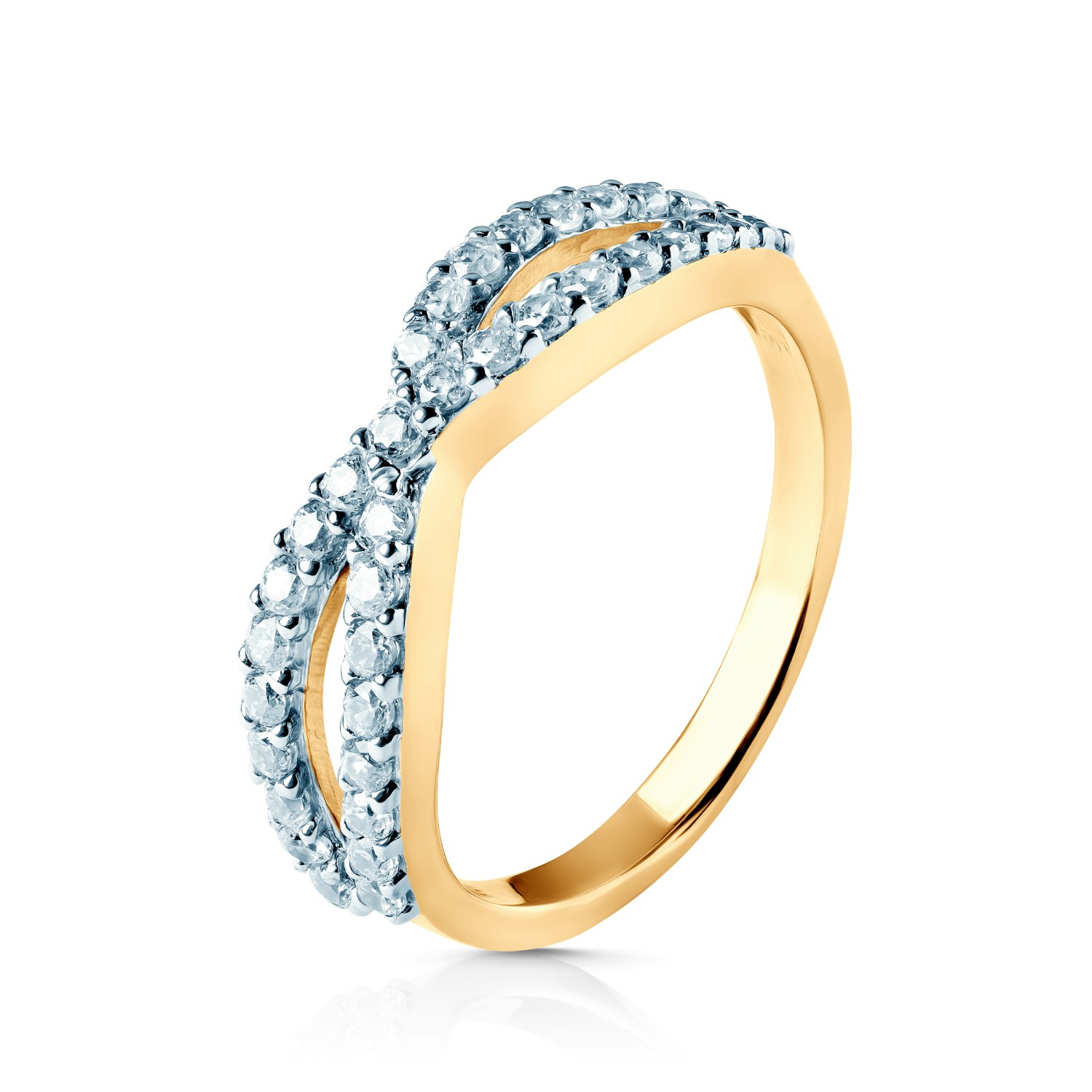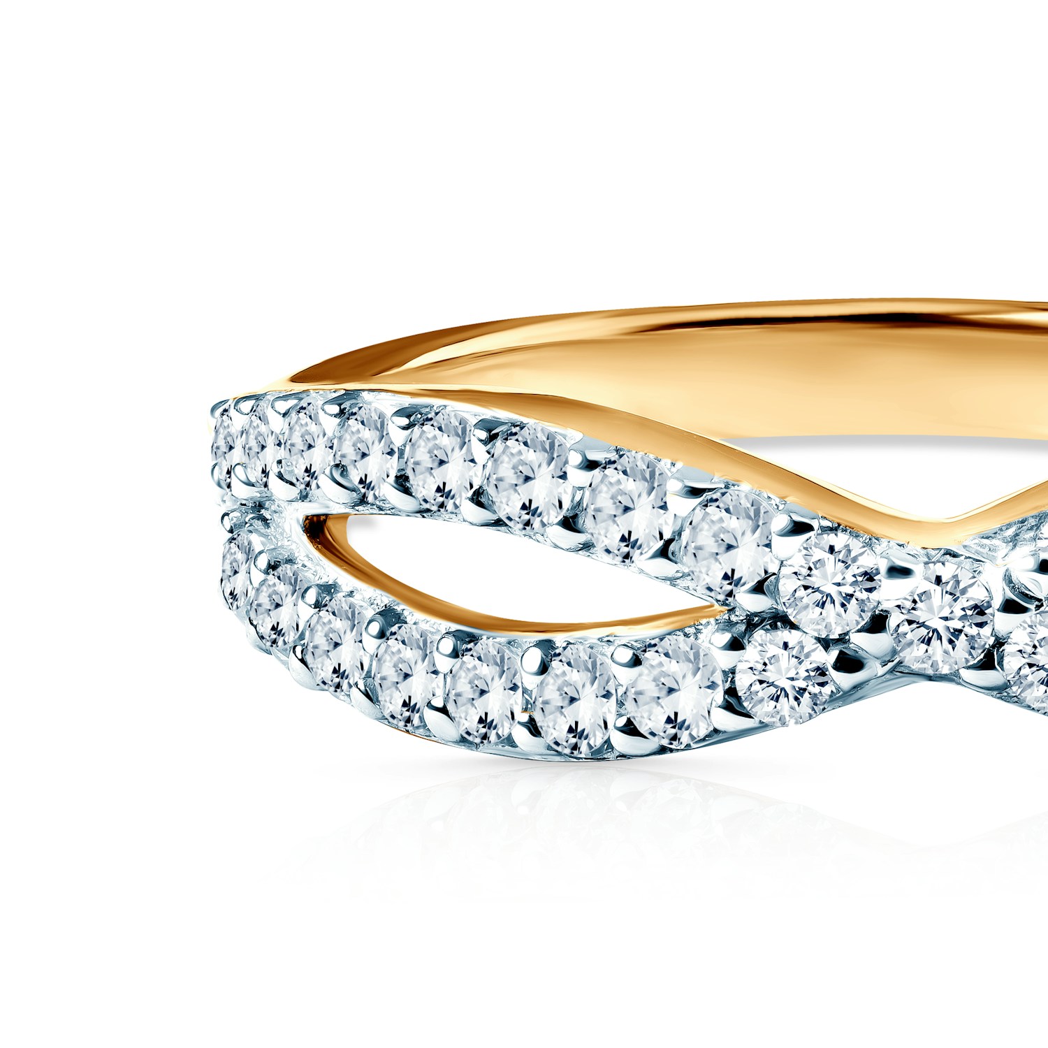 Pierścionek wykonany z dwukolorowego złota 585 zachwyca misternym splotem linii, które oplatają palec niczym obietnica wieczności. Delikatne cyrkonie w szlifie brylantowym – aż 36 lśniących kamieni – tworzą niepowtarzalny blask, przyciągający spojrzenia.